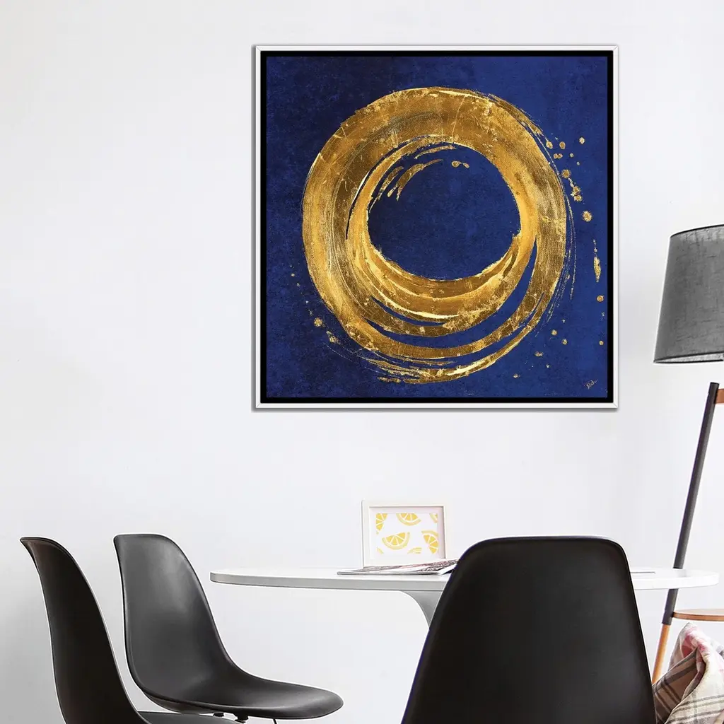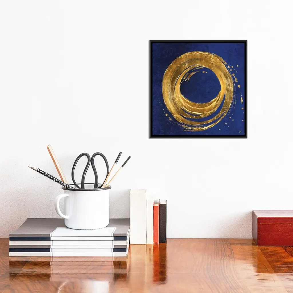 Icanvas "Gold Circle On Blue" By Patricia Pinto Framed Canvas Print - Gold - 12x12