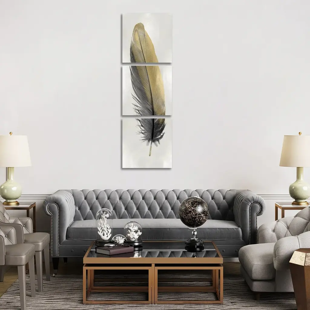 Icanvas "Gold Feather On Silver I" By Julia Bosco 3-Piece Canvas Wall Art Set - 60x20x1.5