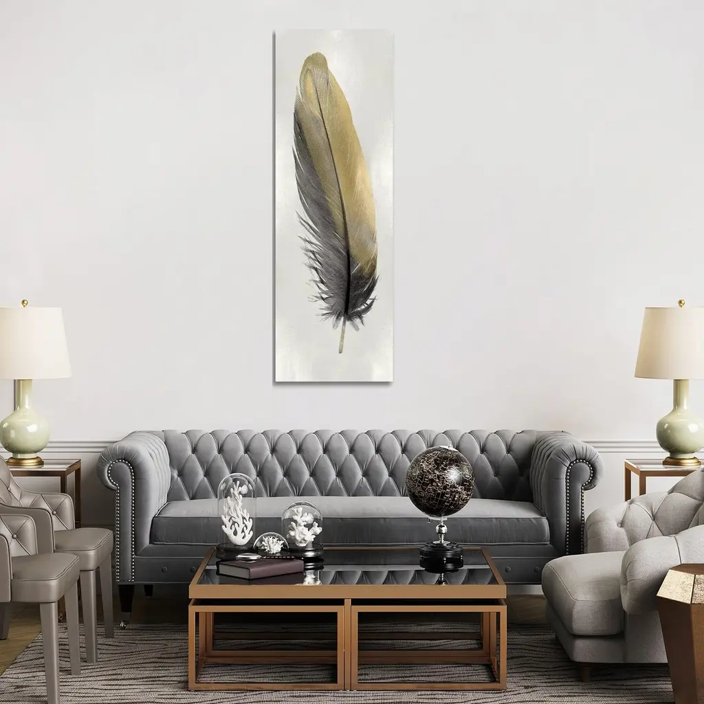 Icanvas "Gold Feather On Silver I" By Julia Bosco Canvas Print - 48x16x1.5
