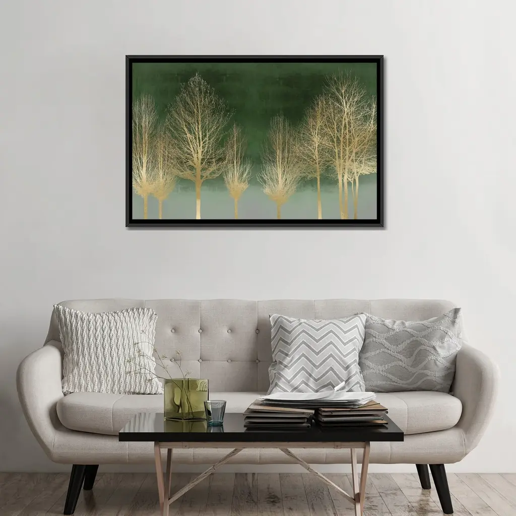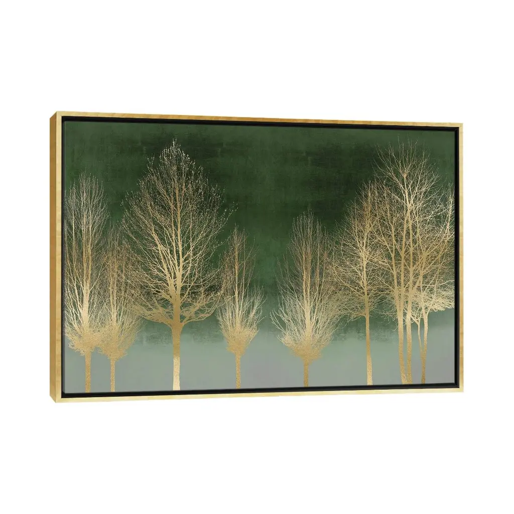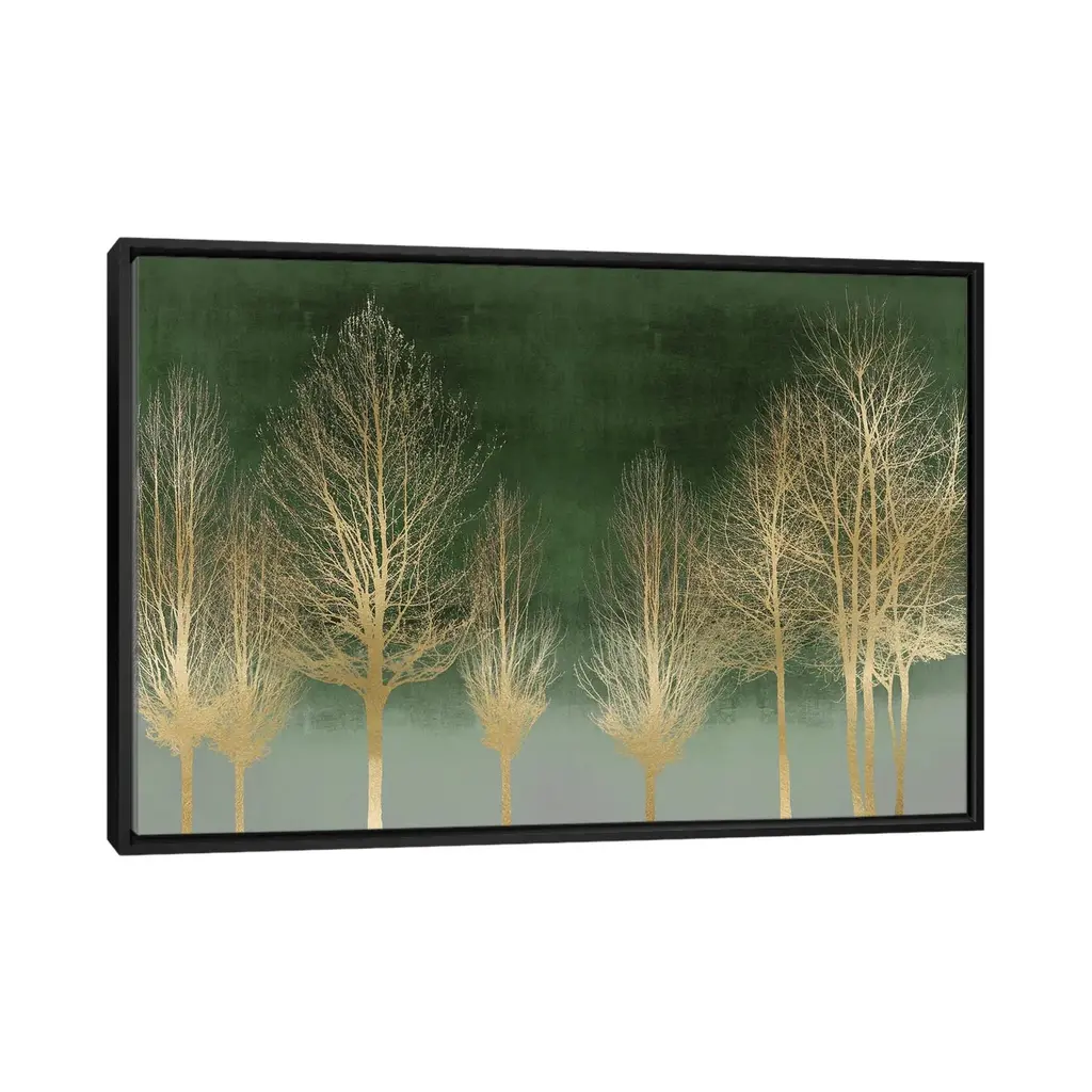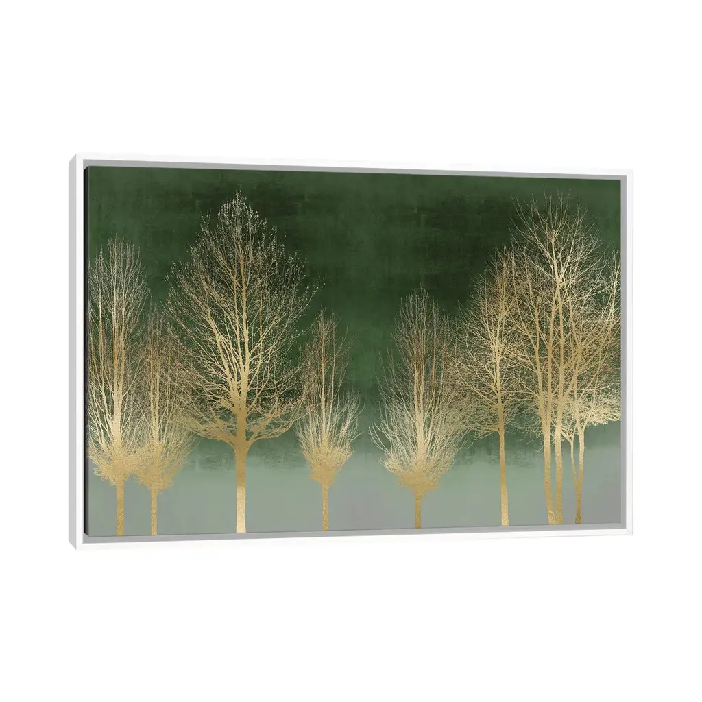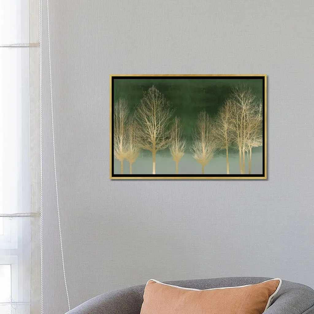 Icanvas "Gold Forest On Green" By Kate Bennett Framed Canvas Print - Gold - 18x26