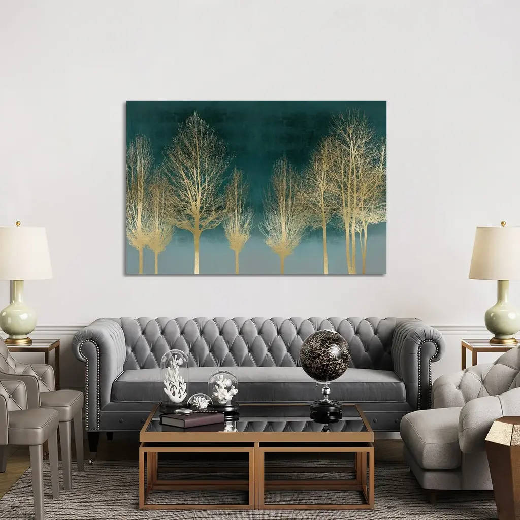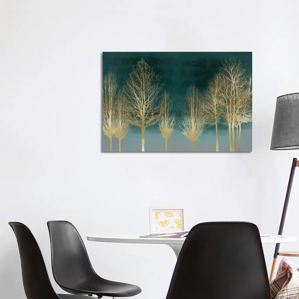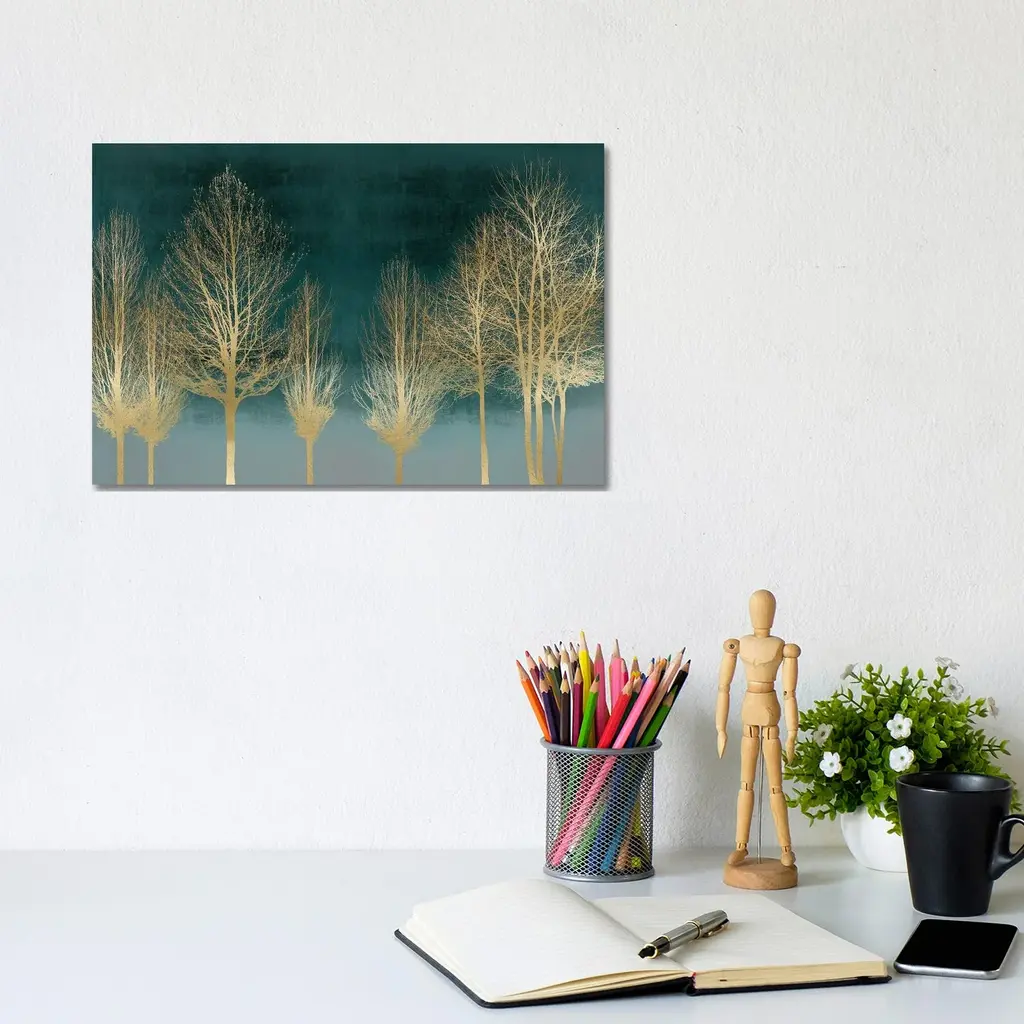 Icanvas "Gold Forest On Teal" By Kate Bennett Canvas Print - 18x26x1.5