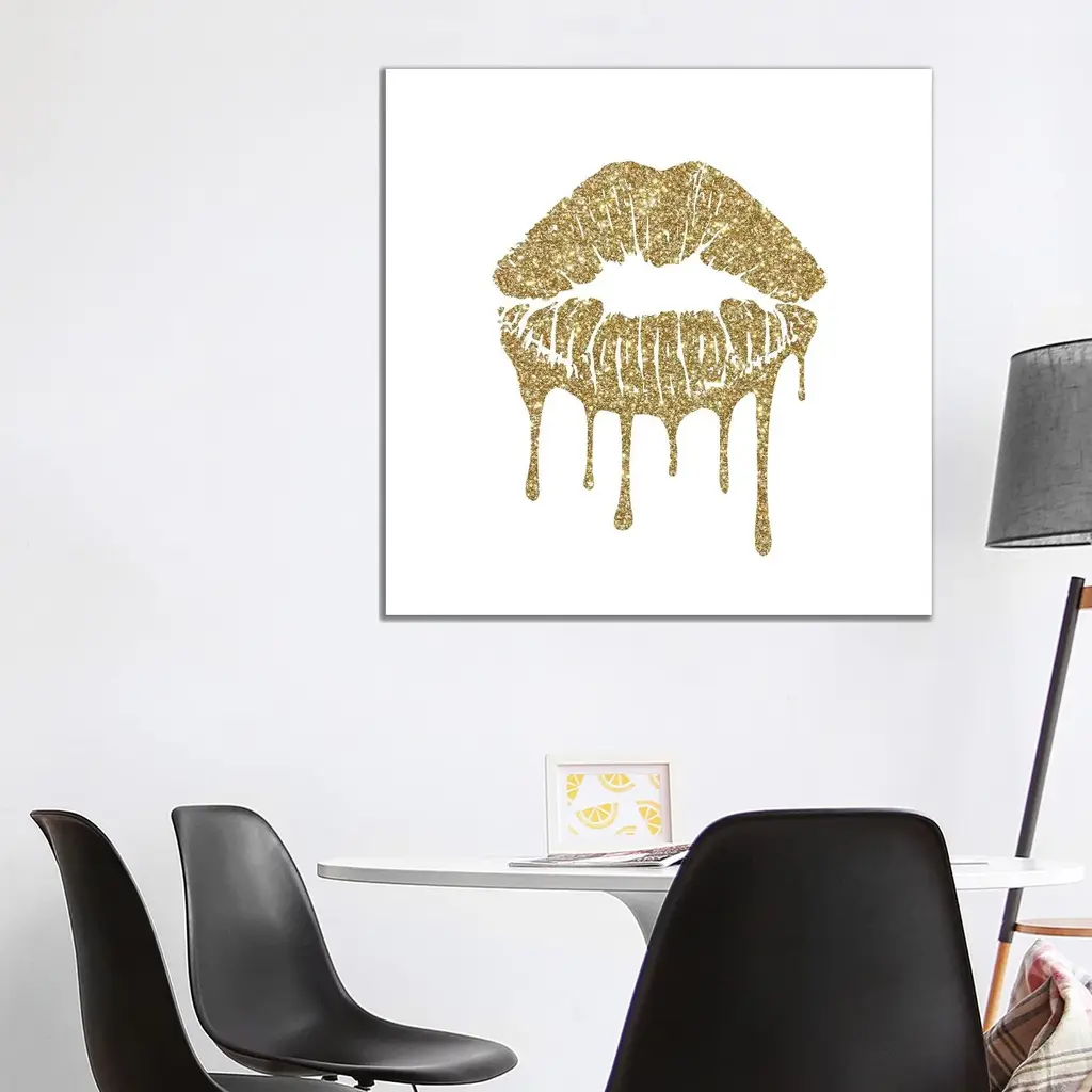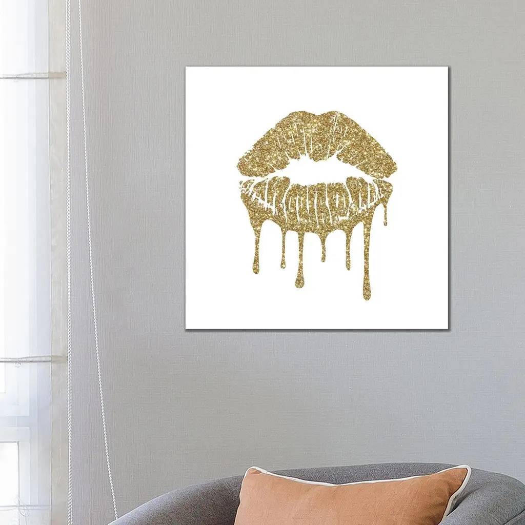 Icanvas "Gold Kiss Mark Drips, Square" By Amanda Greenwood Canvas Print - 26x26x1.5