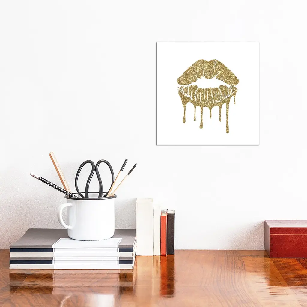 Icanvas "Gold Kiss Mark Drips, Square" By Amanda Greenwood Canvas Print - 37x37x1.5