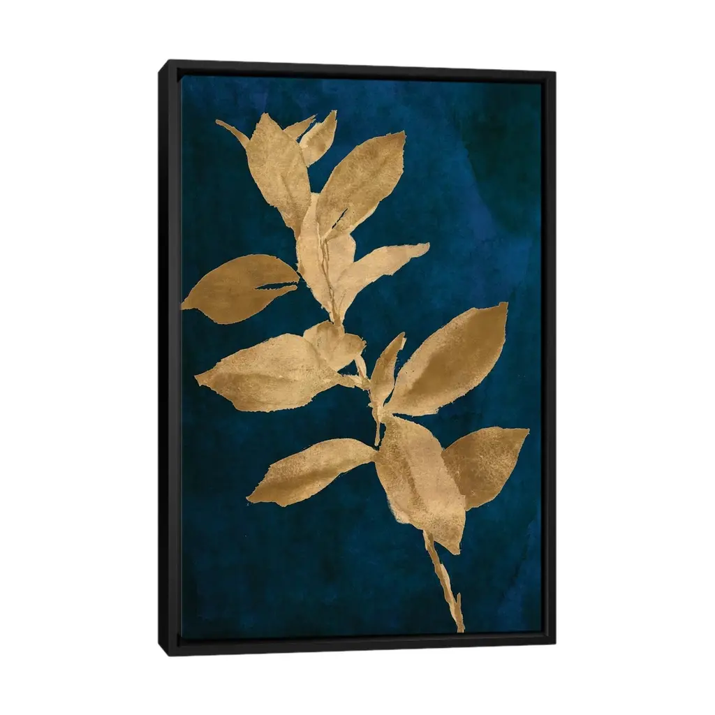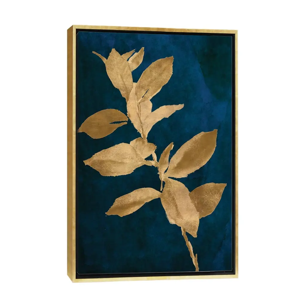 Icanvas "Gold Leaves On Navy Iv" By Lanie Loreth Framed Canvas Print - Gold - 26x18