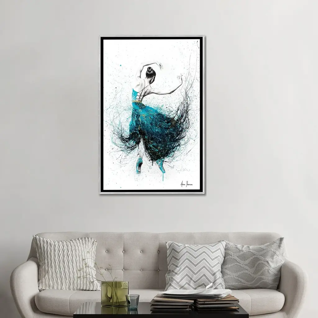 Elevate your space with the iCanvas "Gold River Dance" by Ashvin Harrison Framed artwork. Crafted in the USA with artist-grade canvas, this Giclee canvas artwork offers the texture, look, and feel of a fine-art painting. Professionally hand-stretched and stapled over North American pine-wood bars in Gallery Wrap style, this artwork is presented just like in galleries. The 2-inch thick elegant hard wood frame adds a touch of sophistication, while the inset art creates a "floating" illusion with a 3/8" space between the art and frame. With fade-resistant archival inks, the colors remain vibrant for decades, even when exposed to strong light. Add a contemporary and uncompromising style to your space with this exceptional and detailed piece.Features: