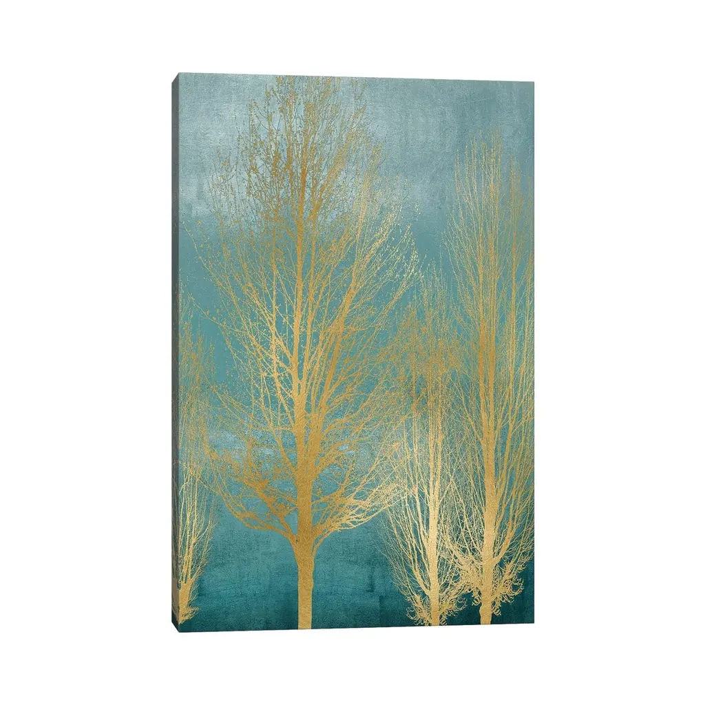 Icanvas "Gold Trees On Aqua Panel Ii" By Kate Bennett Canvas Print - 12x8x0.75