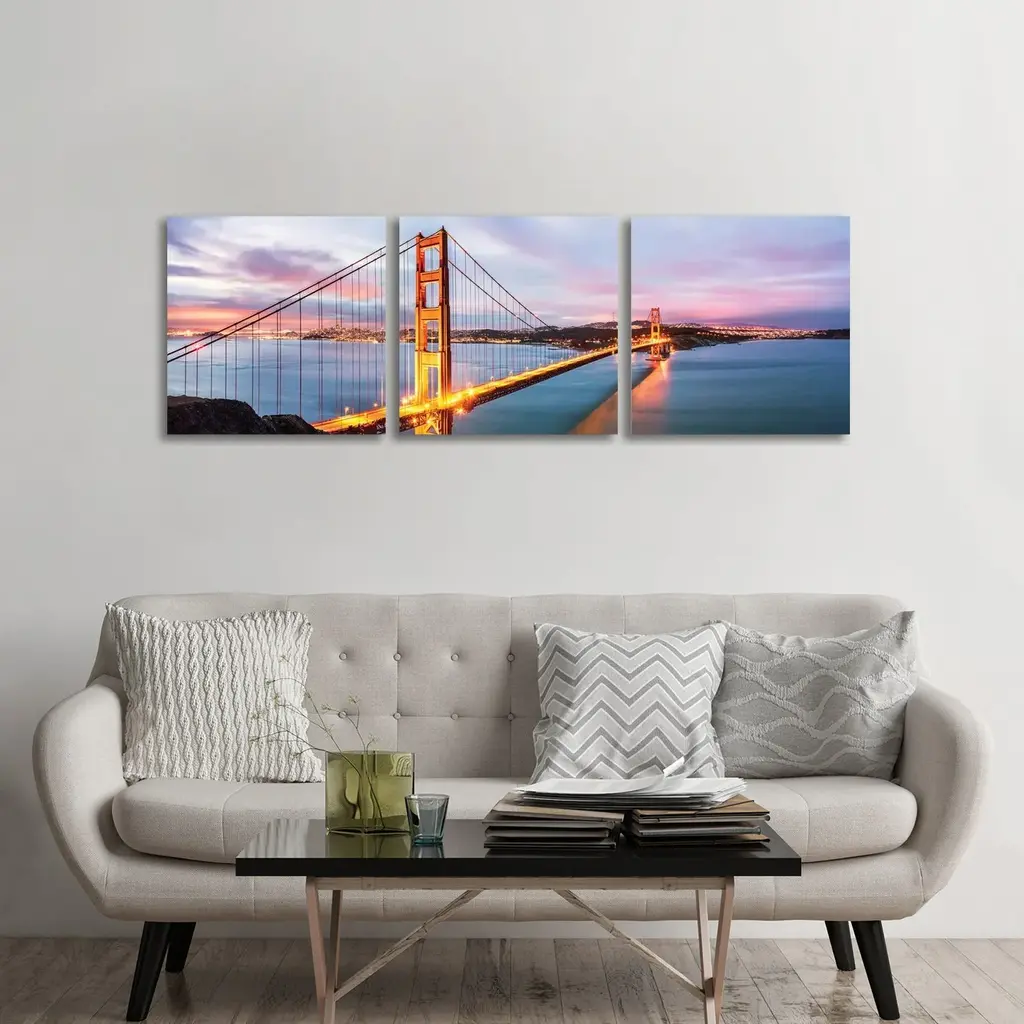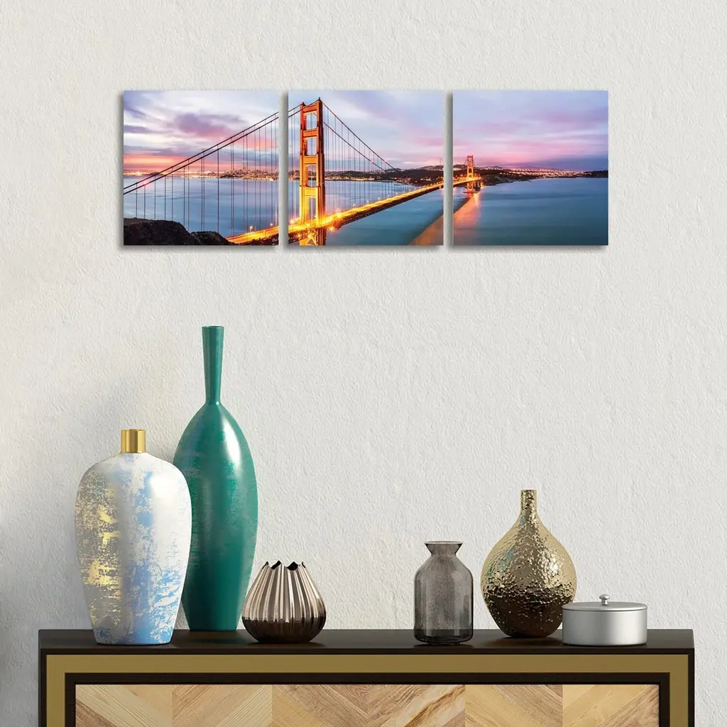 Icanvas "Golden Gate Bridge At Dawn, San Francisco" By Matteo Colombo 3-Piece Canvas Wall Art Set - 12x36x1.5
