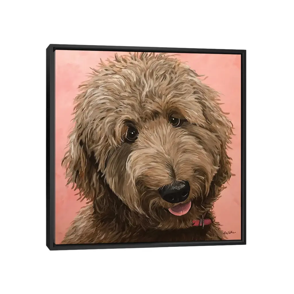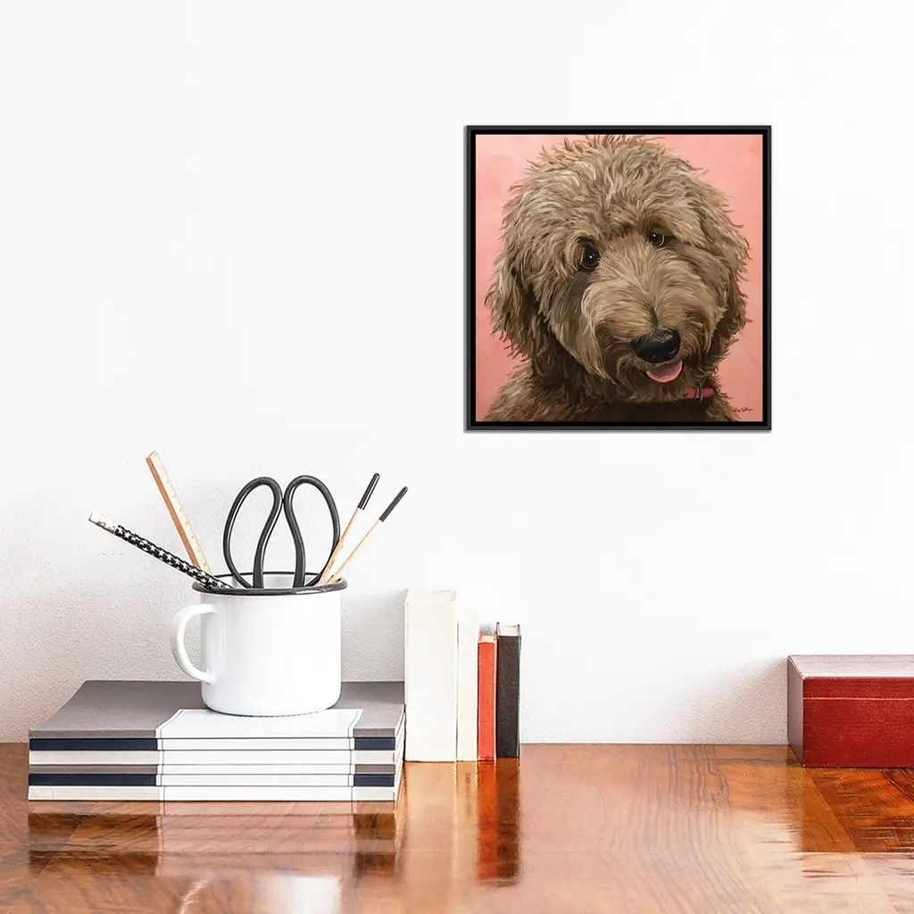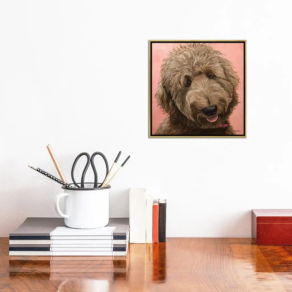 Icanvas "Goldendoodle Ruby On Pink" By Hippie Hound Studios Framed Canvas Print - White - 12x12