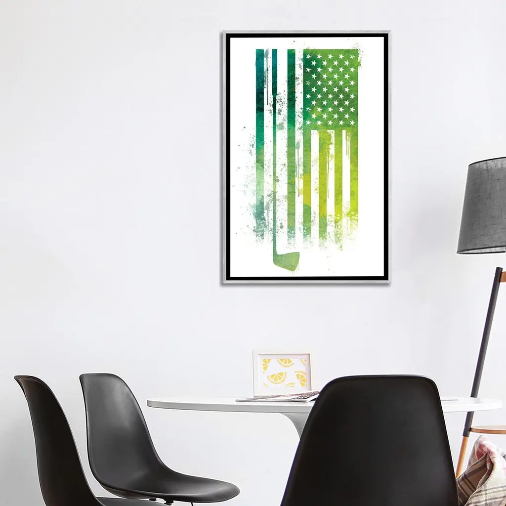 Icanvas "Golf Sports Flag" By 5By5collective Framed - Ebony - 40x26