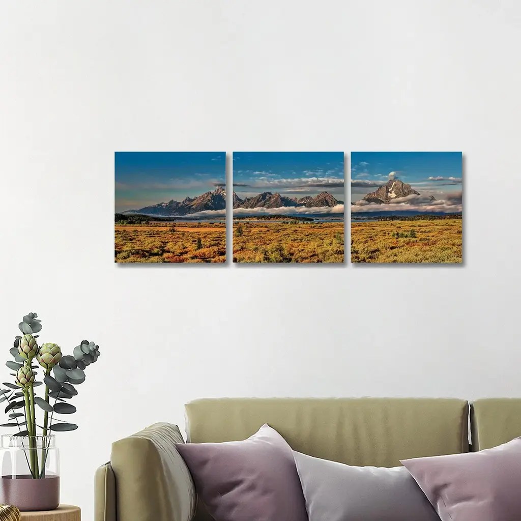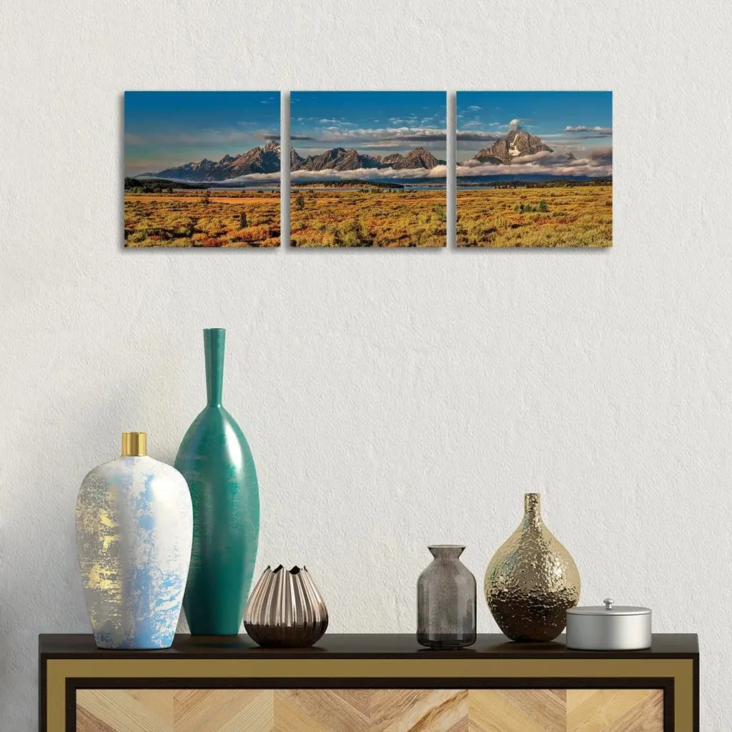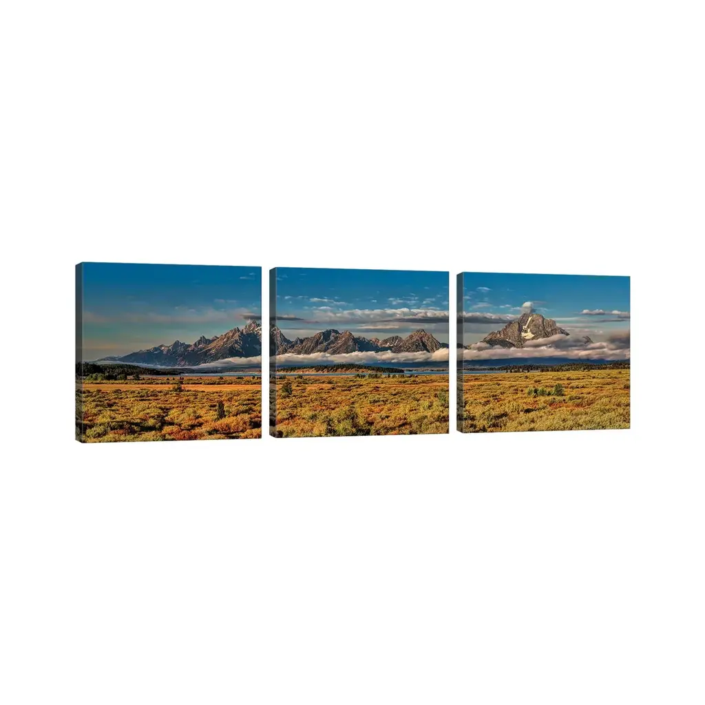Icanvas "Grand Tetons Panorama " By Olena Art 3-Piece Canvas Wall Art Set - 12x36x1.5