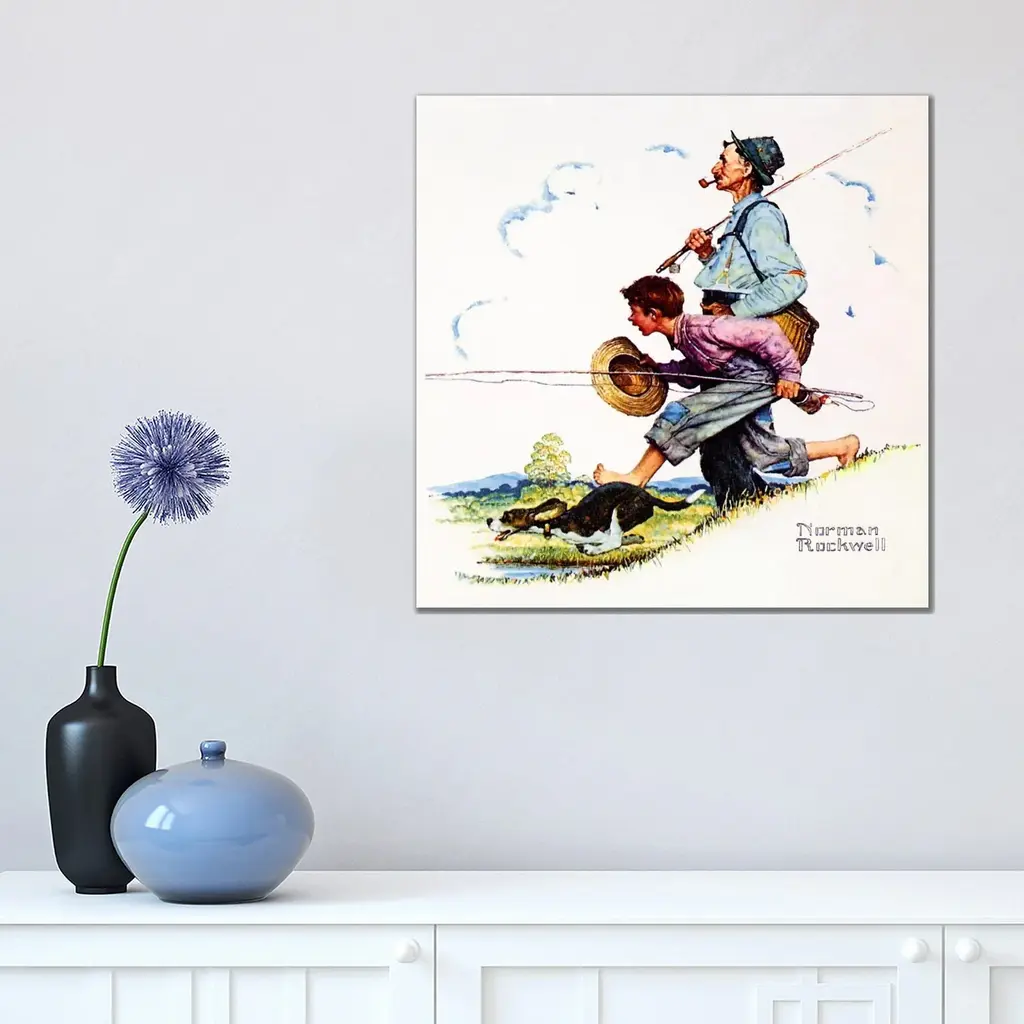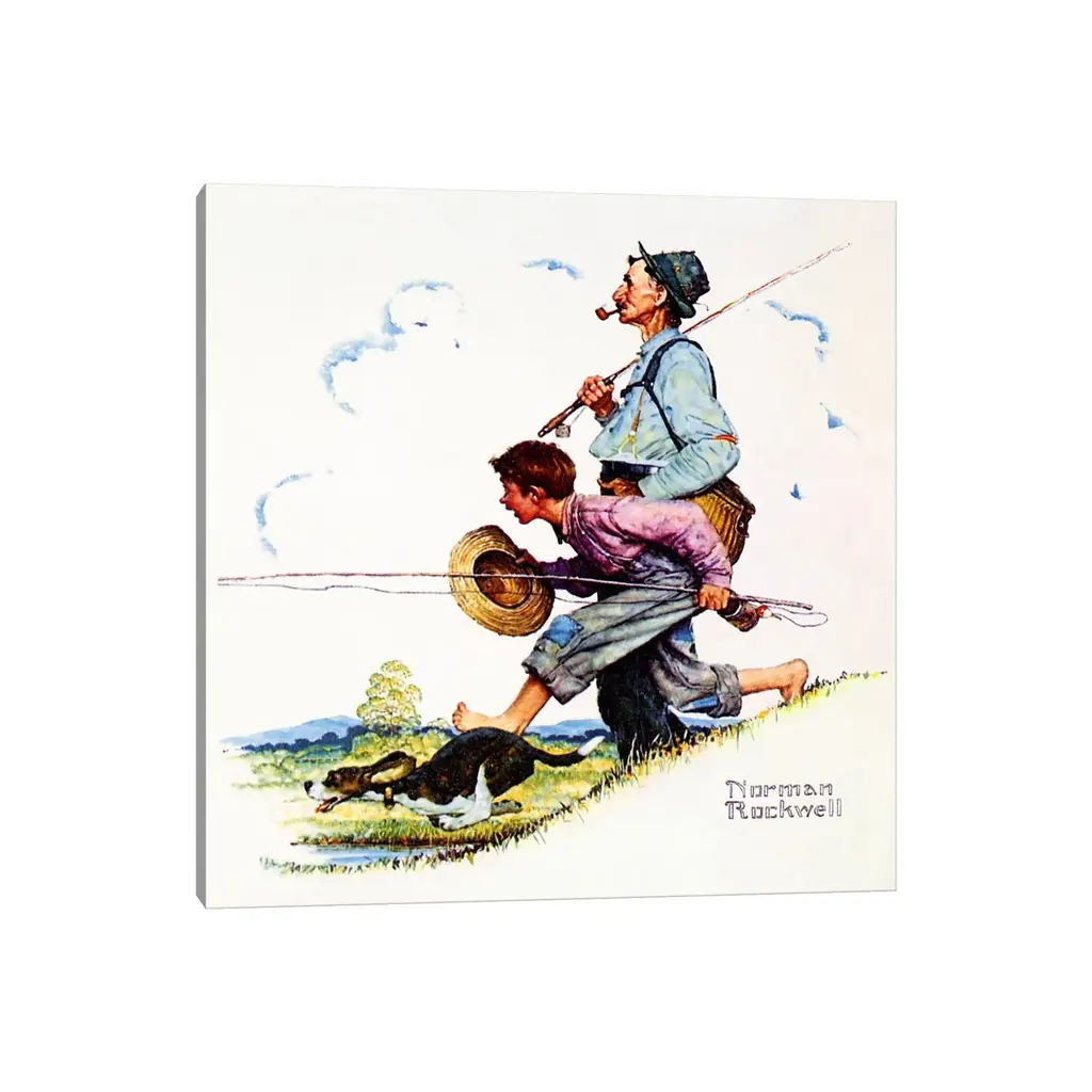 Icanvas "Grandpa And Me - Fishing" By Norman Rockwell Canvas Print - 26x26x1.5