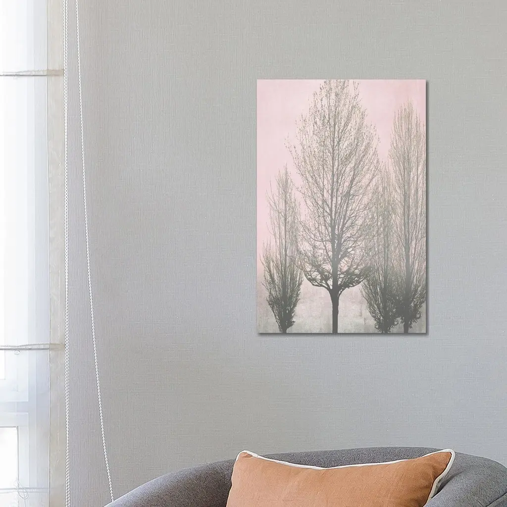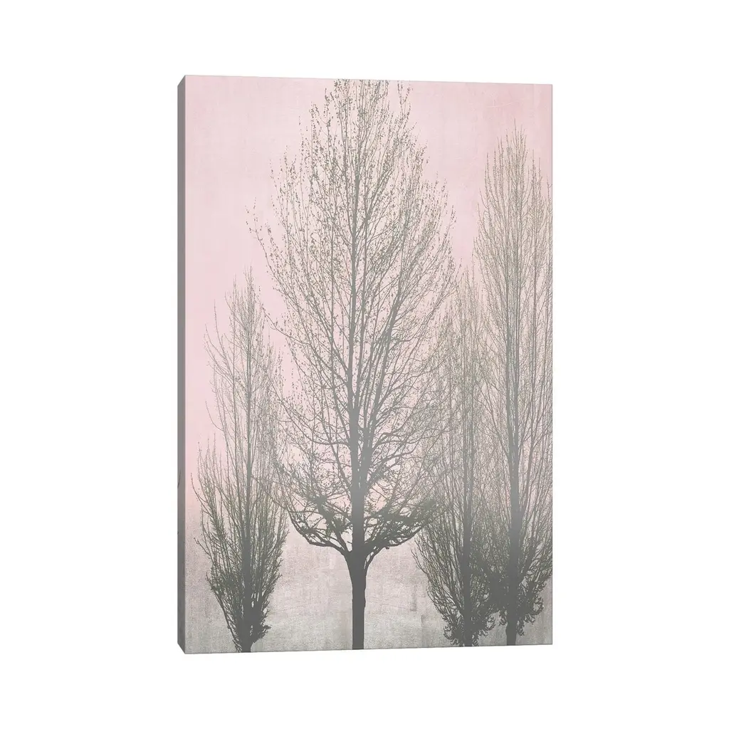 Icanvas "Gray Trees On Pink Panel Ii" By Kate Bennett Canvas Print - 18x12x1.5