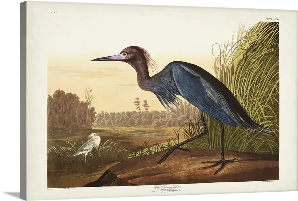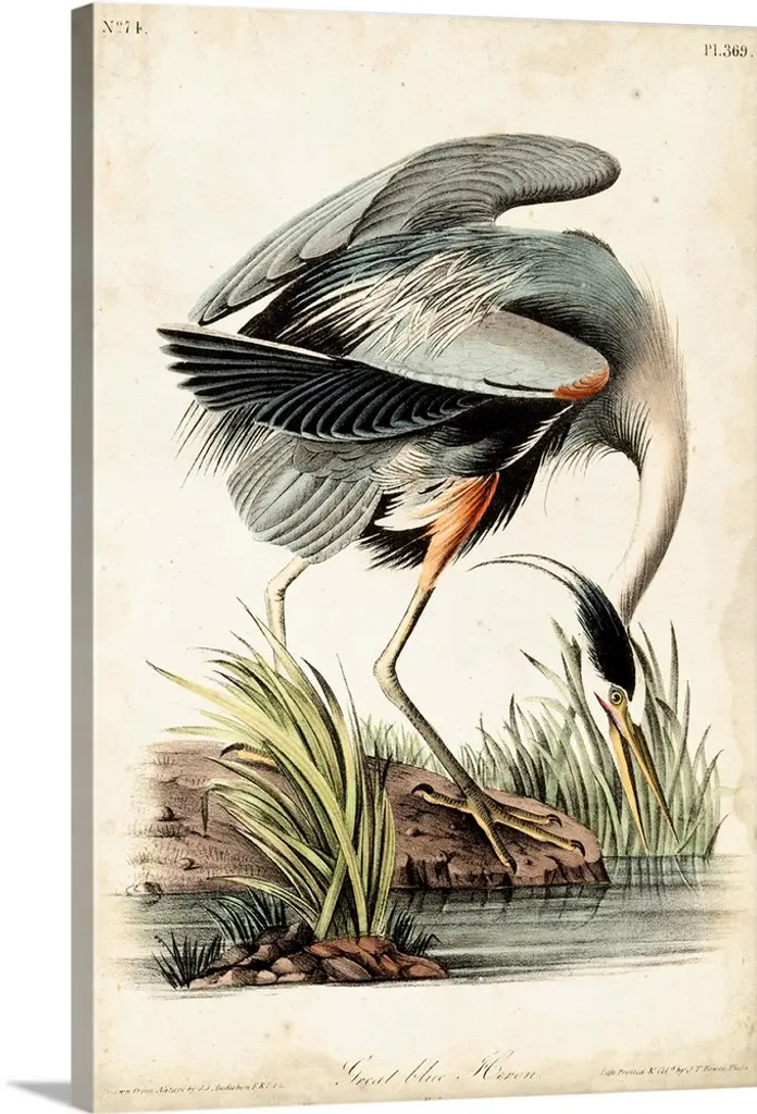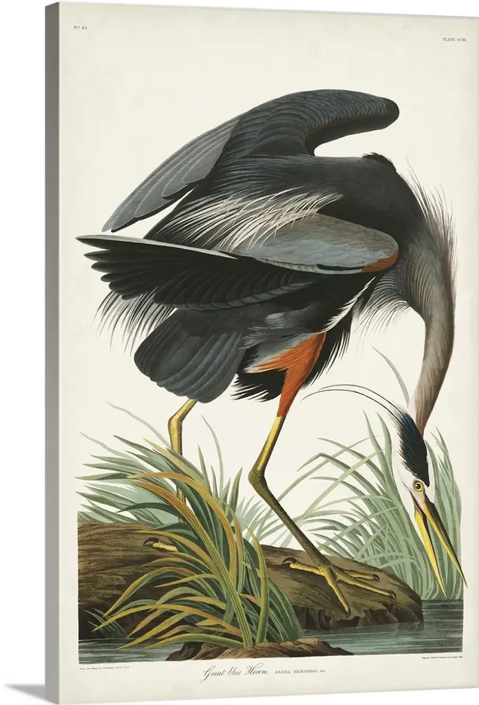 Icanvas "Great Blue Heron " By John James Audubon Framed Canvas Print - 40x26 - Black