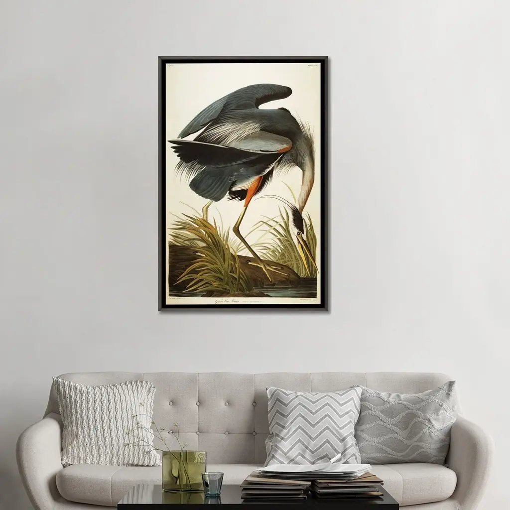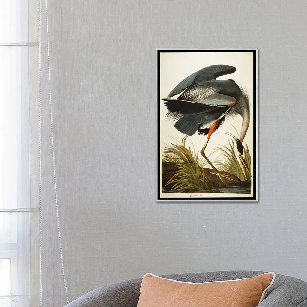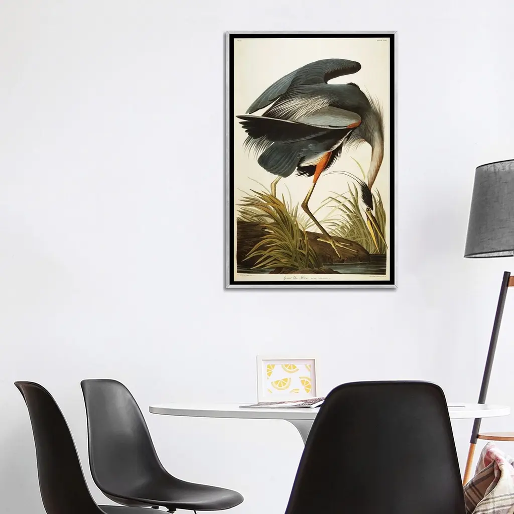 Icanvas "Great Blue Heron " By John James Audubon Framed - Charcoal - 26x18