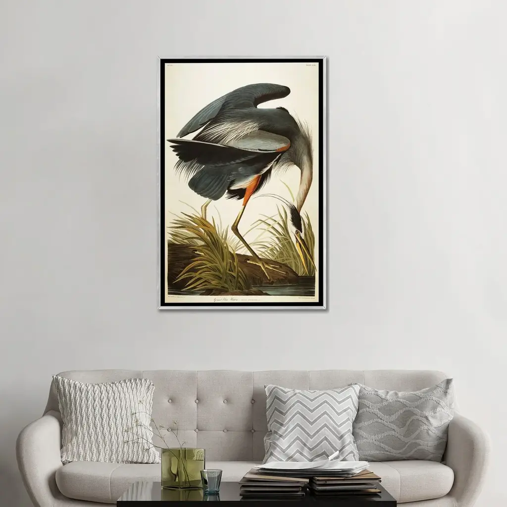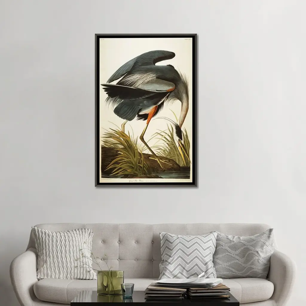 Icanvas "Great Blue Heron " By John James Audubon Framed - Ebony - 48x32