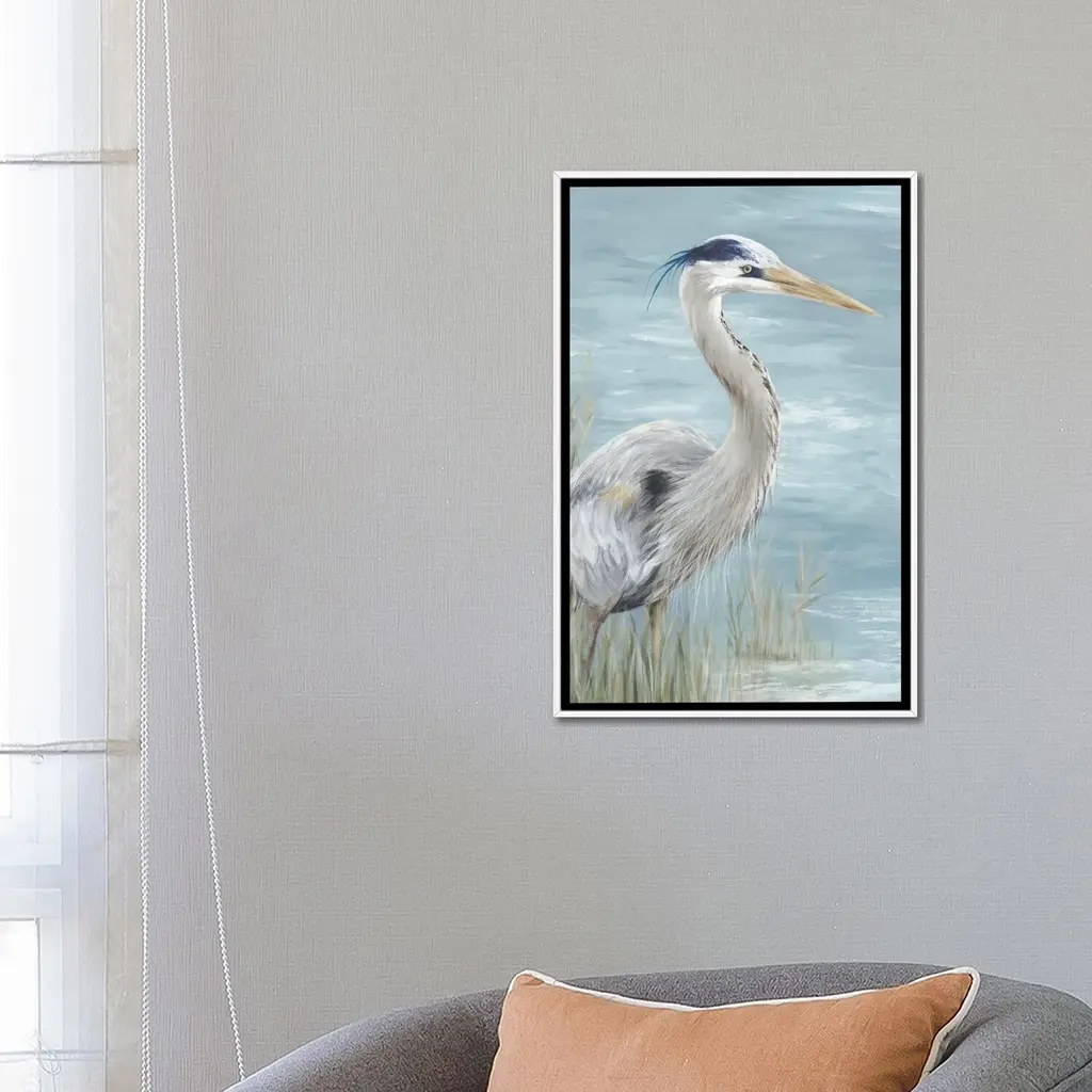 Icanvas "Great Blue Heron Gaze" By Eva Watts Framed Canvas Print - Black - 26x18