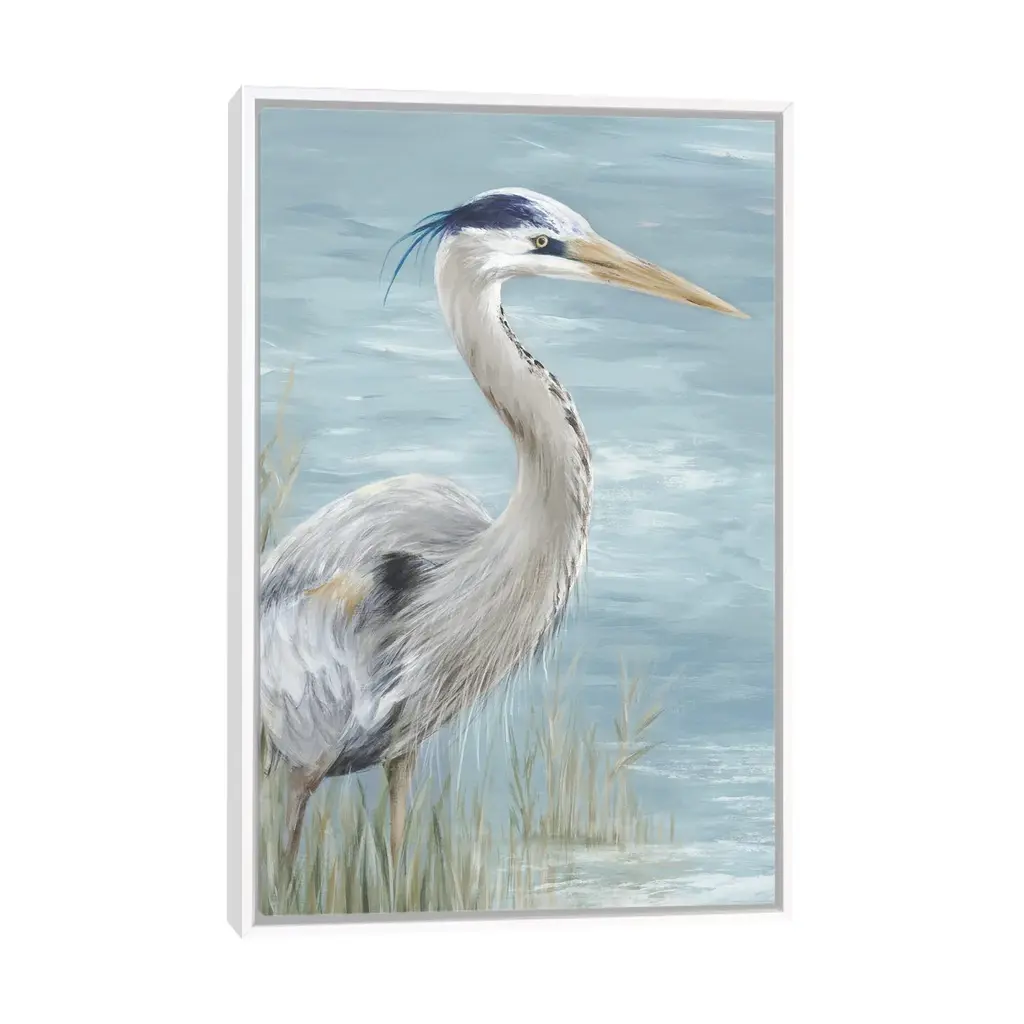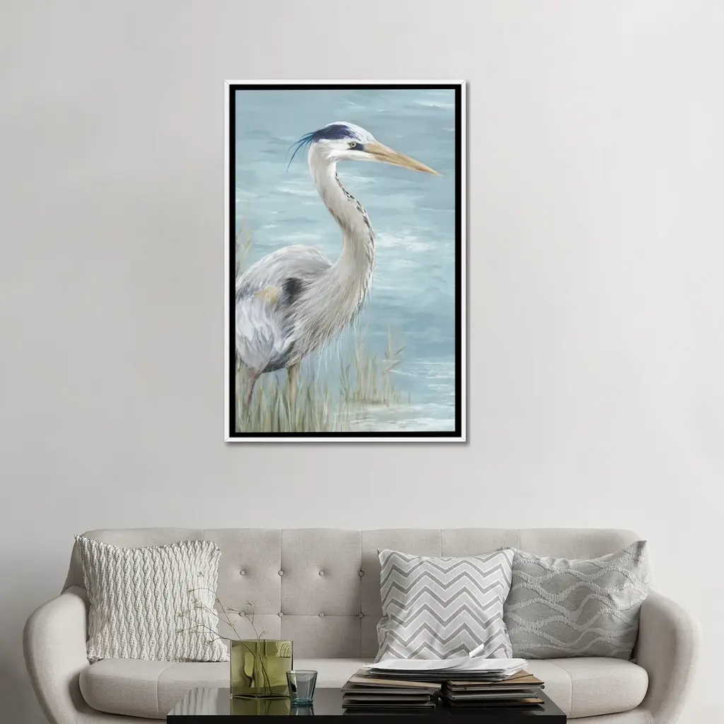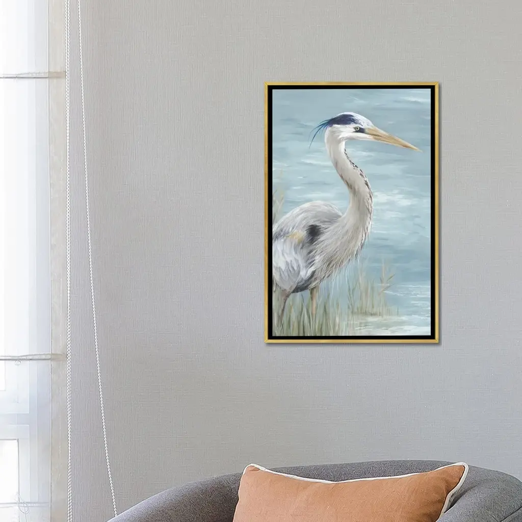 Icanvas "Great Blue Heron Gaze" By Eva Watts Framed Canvas Print - Black - 48x32