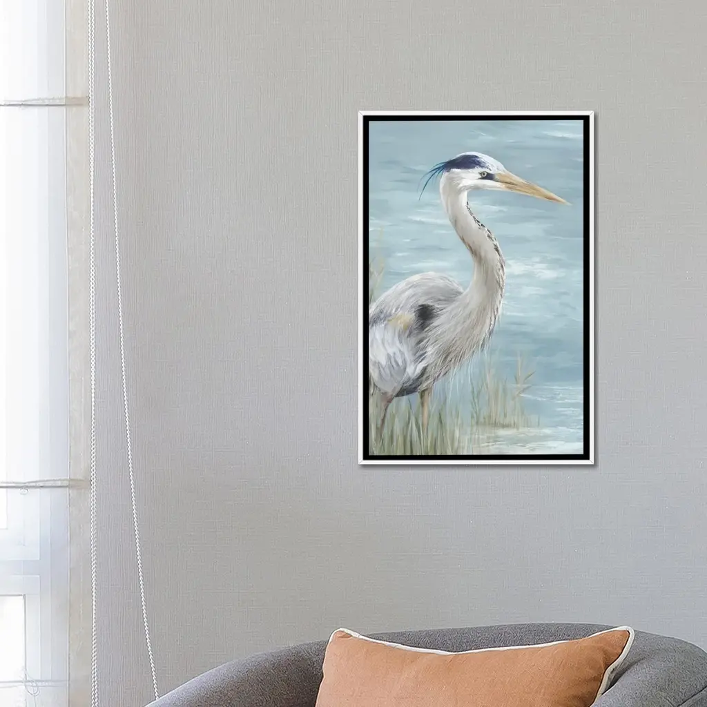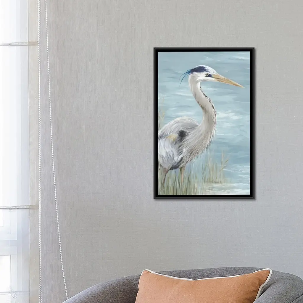 Icanvas "Great Blue Heron Gaze" By Eva Watts Framed Canvas Print - Gold - 40x26