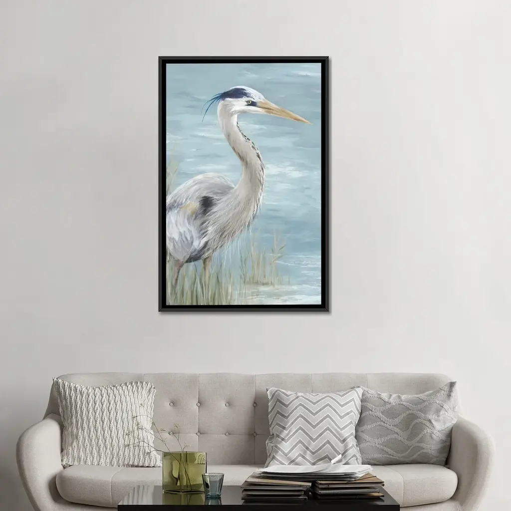 Icanvas "Great Blue Heron Gaze" By Eva Watts Framed Canvas Print - Gold - 48x32