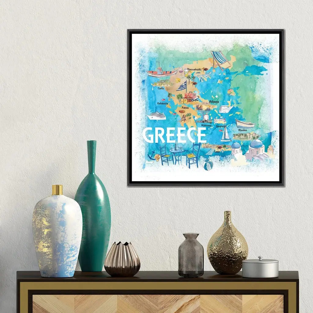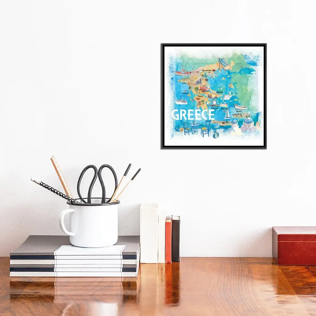 Icanvas "Greece Illustrated Travel Map With Landmarks And Highlights" By Markus & Martina Bleichner Framed - Charcoal - 26x26