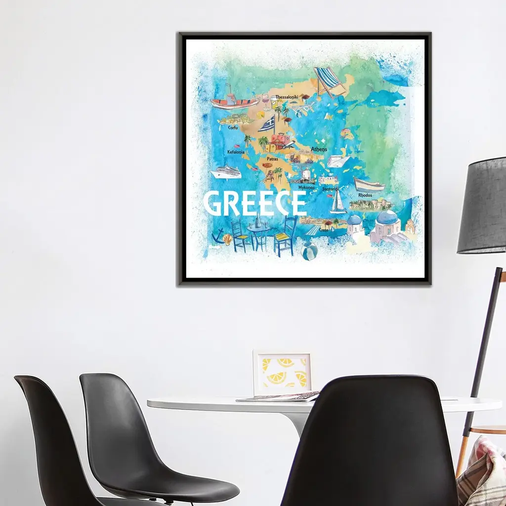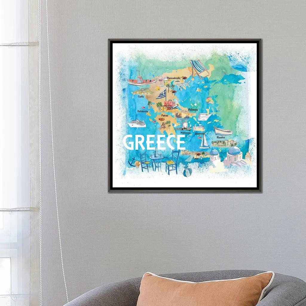 Icanvas "Greece Illustrated Travel Map With Landmarks And Highlights" By Markus & Martina Bleichner Framed - Charcoal - 37x37