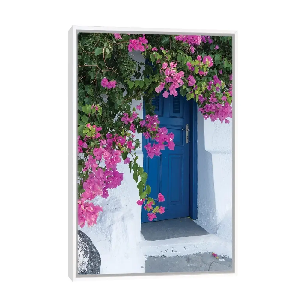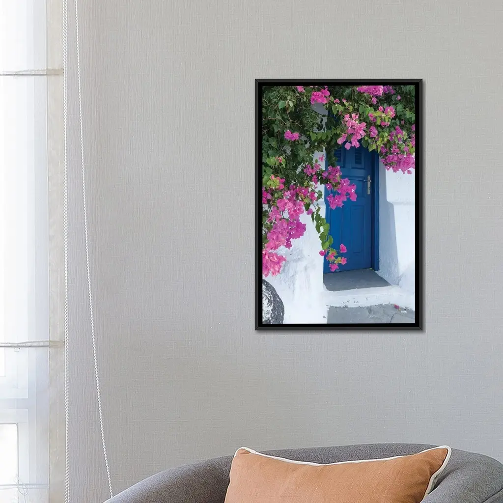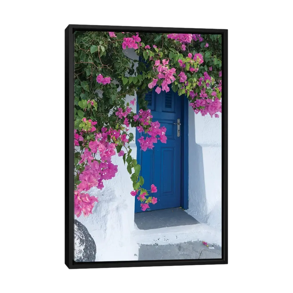 Icanvas "Greece, Santorini. A Picturesque Blue Door." By Brenda Tharp Framed Canvas Print - Black - 26x18