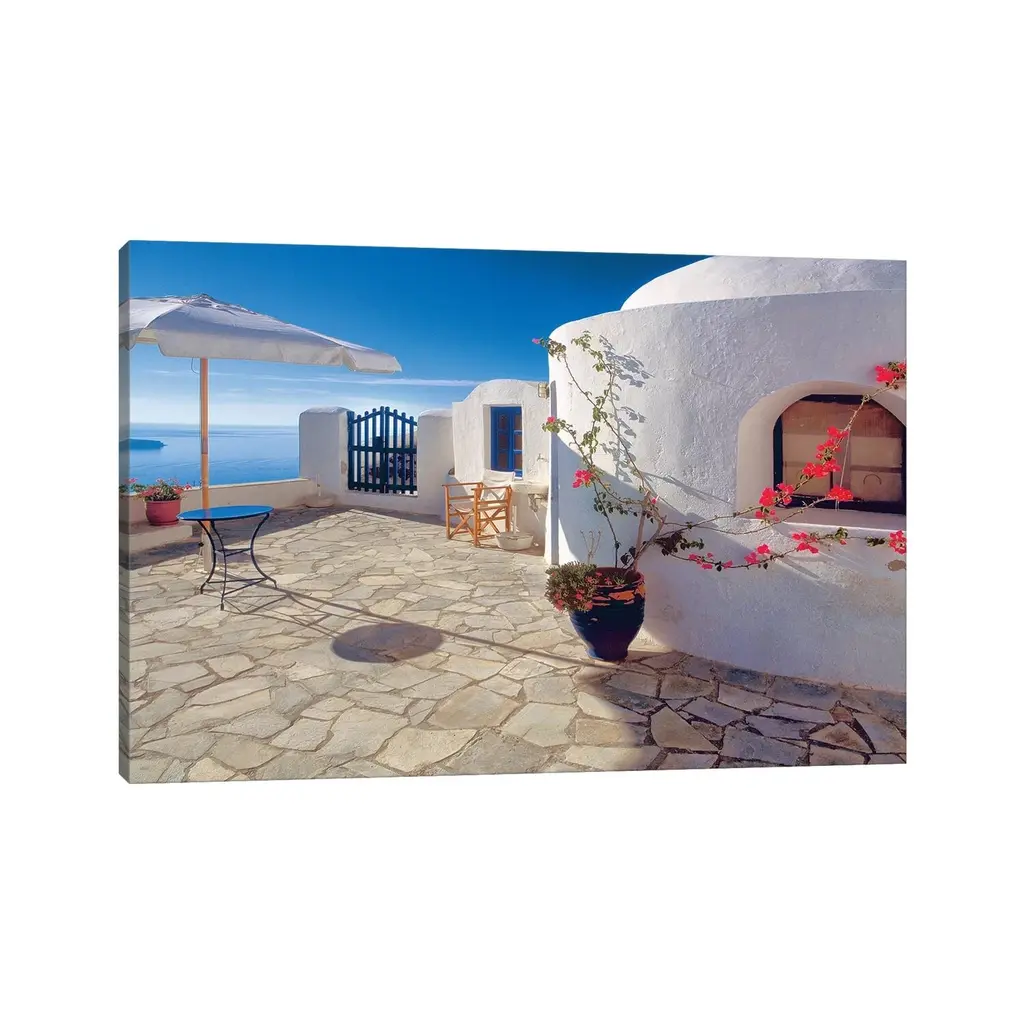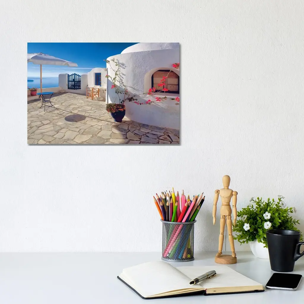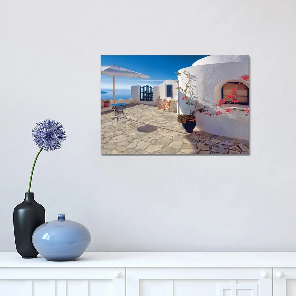 Icanvas "Greece, Santorini, Oia. House Balcony With Ocean View. " By Jaynes Gallery Canvas Print - 12x18x1.5