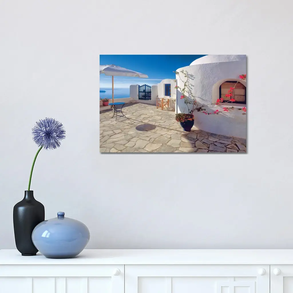 Icanvas "Greece, Santorini, Oia. House Balcony With Ocean View. " By Jaynes Gallery Canvas Print - 8X12x0.75