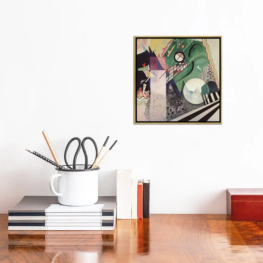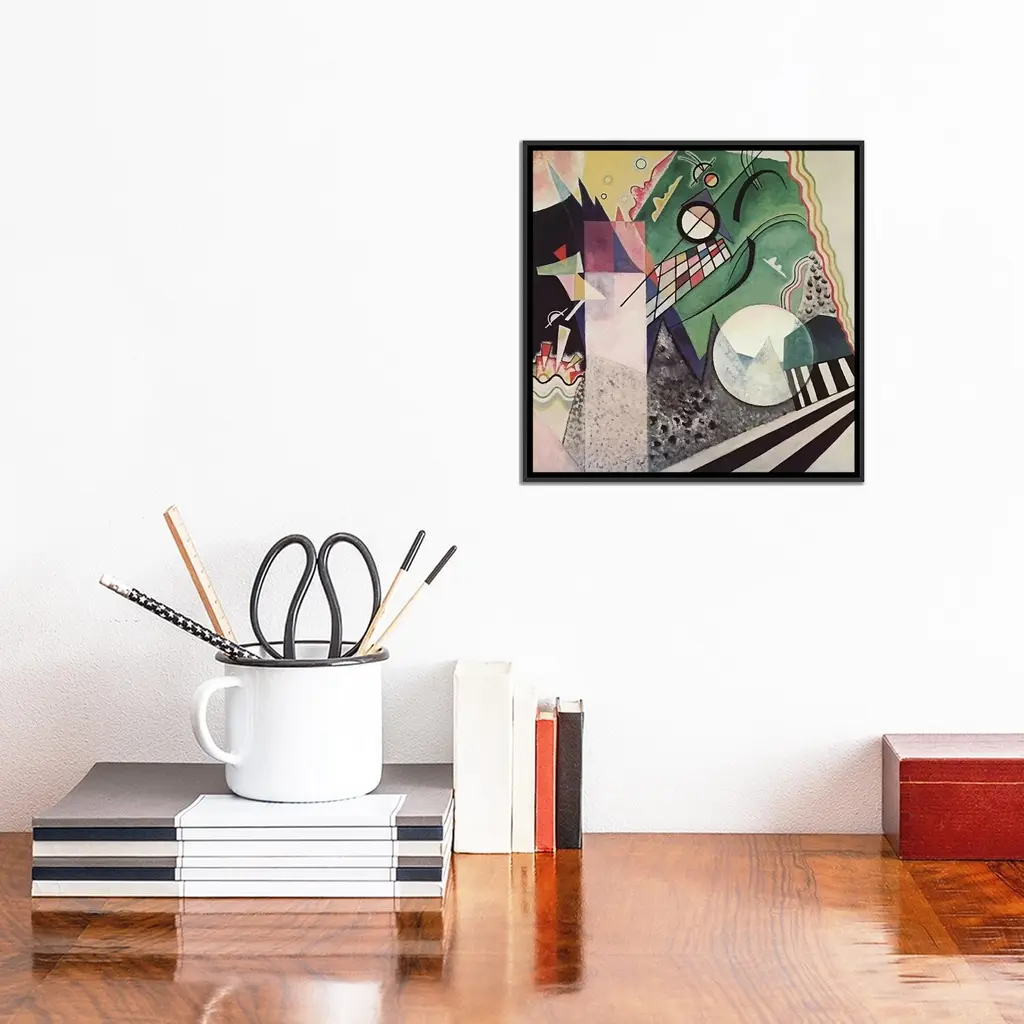 Icanvas "Green Composition" By Wassily Kandinsky Framed Canvas Print - Black - 18x18