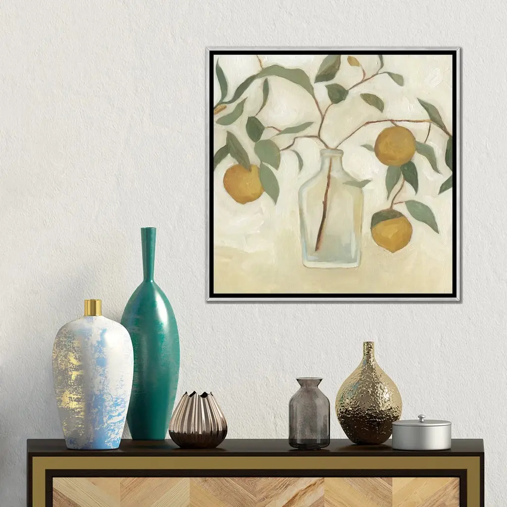 Icanvas "Greenery Still Life I" By Emma Scarvey Framed - 37x37 - Charcoal