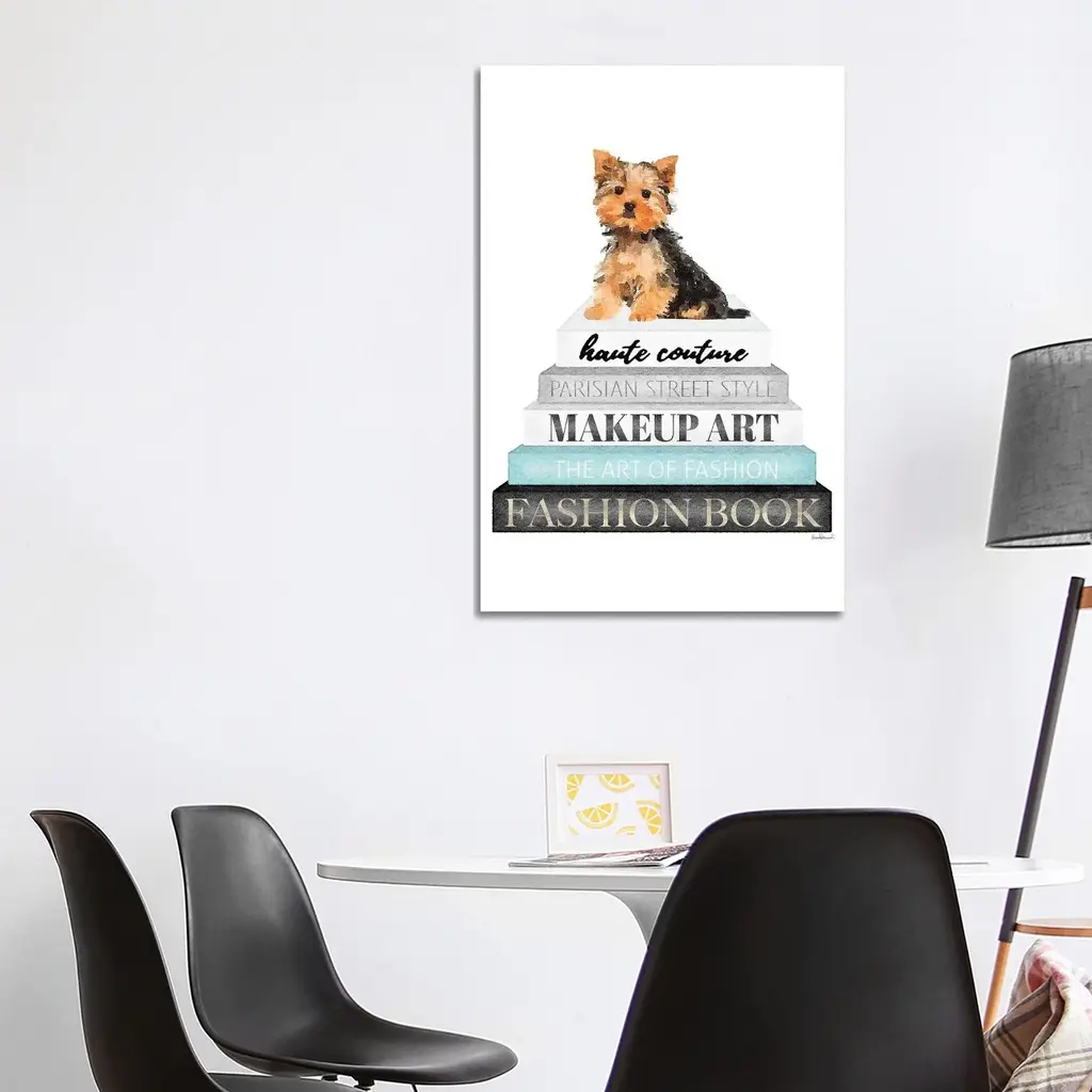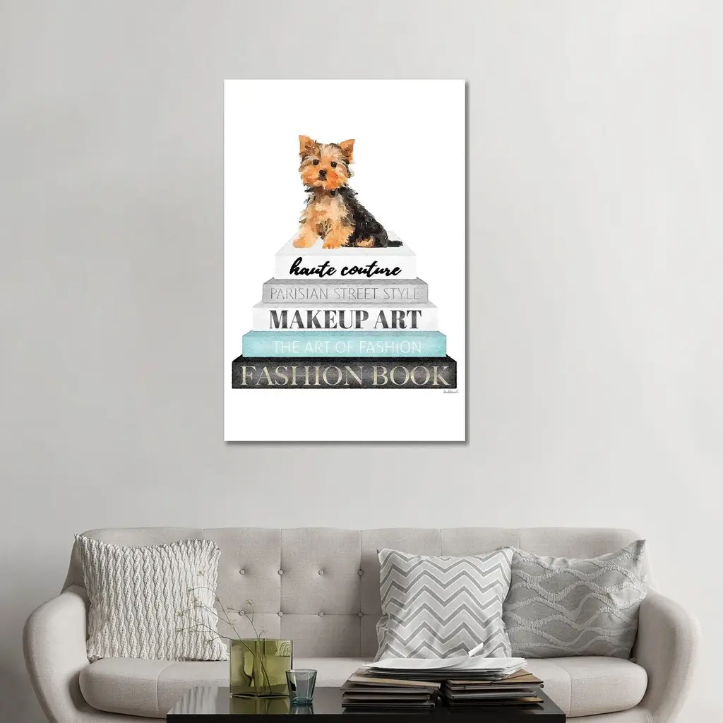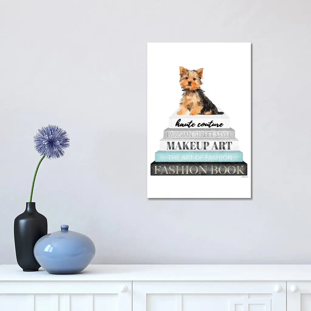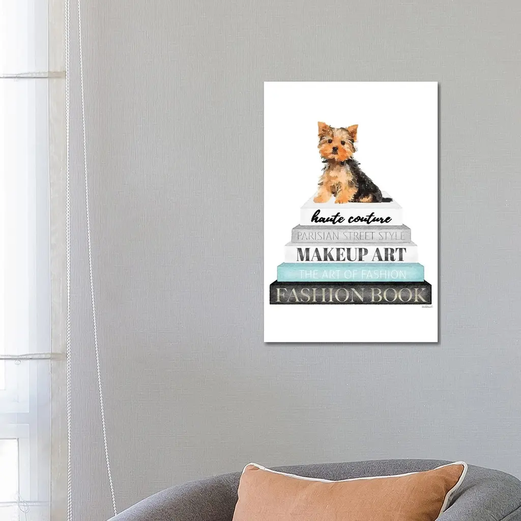 Icanvas "Grey Books With Teal, Yorkie" By Amanda Greenwood Canvas Print - 26x18x1.5