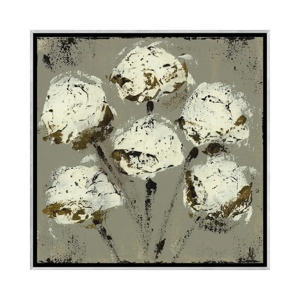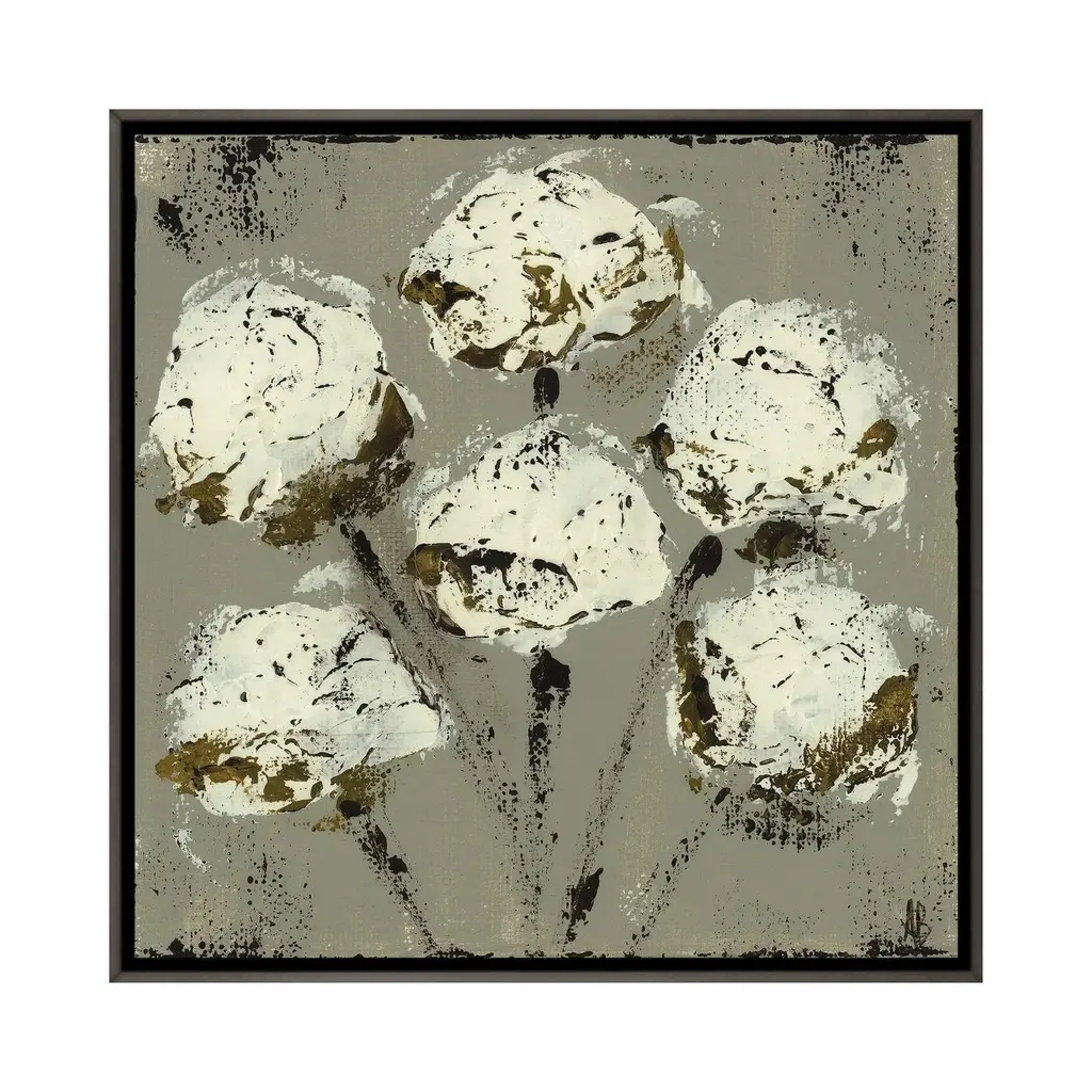 Icanvas "Grey Cotton Stems" By Ashley Bradley Framed - 26x26 - Ebony