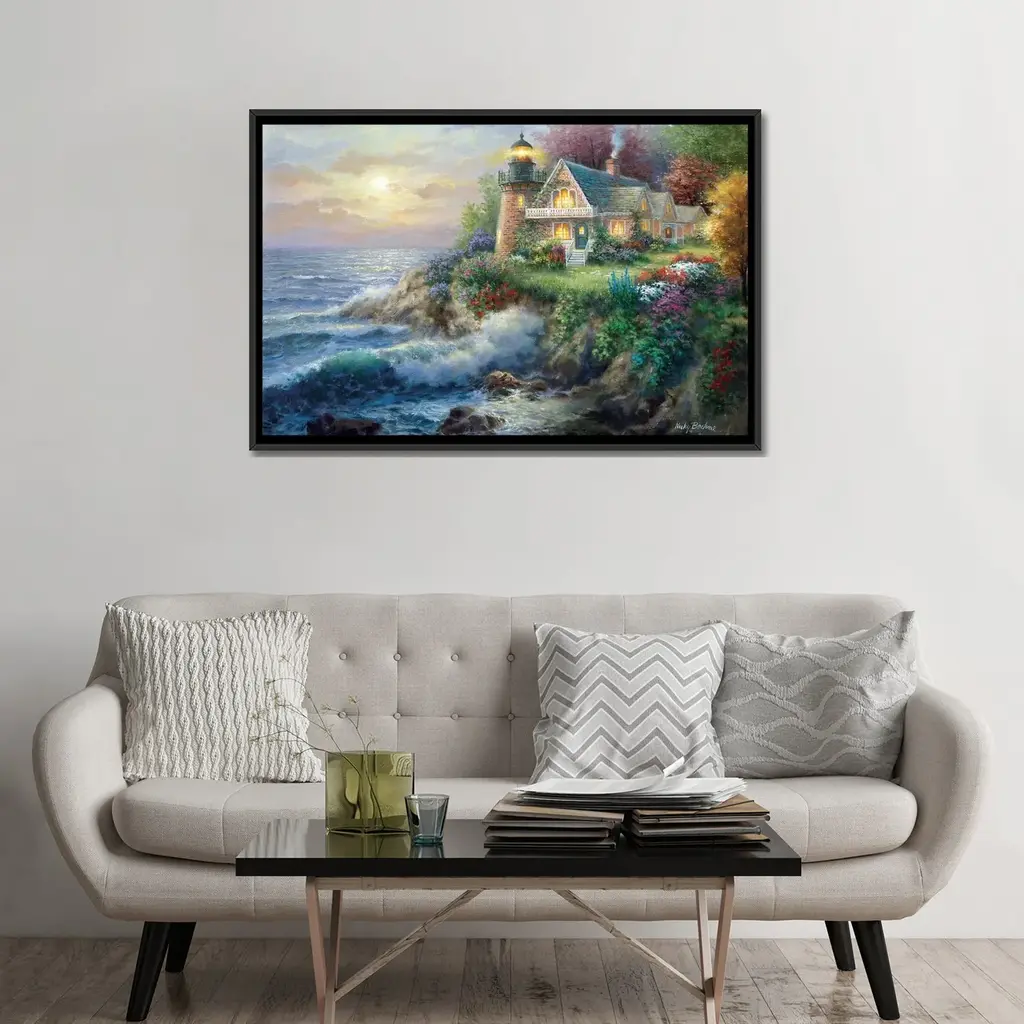 Great Art Deserves to be on Canvas! Unlike thin posters and paper prints, Giclee canvas artwork offers the texture, look and feel of fine-art paintings. This artwork is crafted in the USA with artist-grade canvas, professionally hand-stretched and stapled over North American pine-wood bars in Gallery Wrap style; a method utilized by artists to present artwork in galleries. Your Gallery-Wrapped Canvas comes mounted to a 2 inch thick, elegant hard wood frame. The art is inset, leaving a 3/8" space between the art and frame; creating a "floating" illusion. Fade-resistant archival inks guarantee perfect color reproduction that remains vibrant for decades even when exposed to strong light. Add brilliance in color and exceptional detail to your space with this contemporary and uncompromising style!