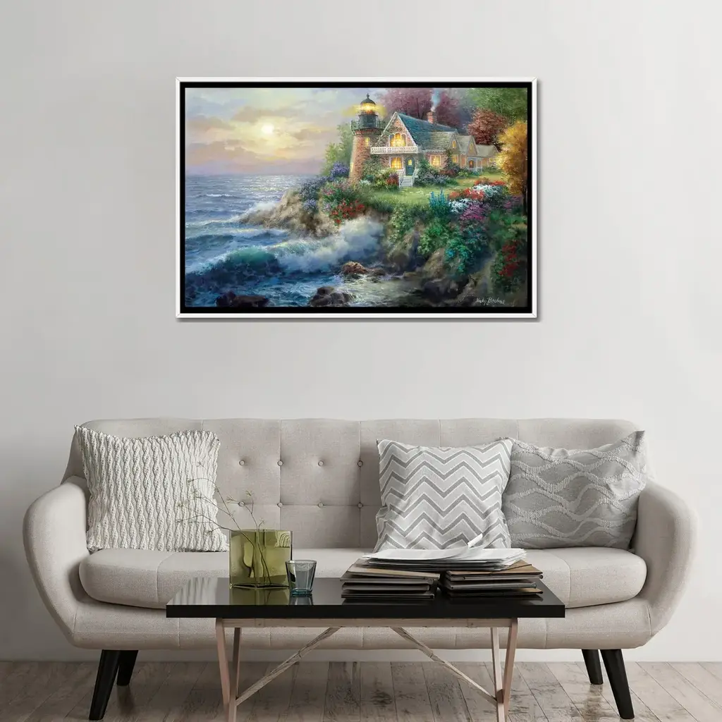 Great Art Deserves to be on Canvas! Unlike thin posters and paper prints, Giclee canvas artwork offers the texture, look and feel of fine-art paintings. This artwork is crafted in the USA with artist-grade canvas, professionally hand-stretched and stapled over North American pine-wood bars in Gallery Wrap style; a method utilized by artists to present artwork in galleries. Your Gallery-Wrapped Canvas comes mounted to a 2 inch thick, elegant hard wood frame. The art is inset, leaving a 3/8" space between the art and frame; creating a "floating" illusion. Fade-resistant archival inks guarantee perfect color reproduction that remains vibrant for decades even when exposed to strong light. Add brilliance in color and exceptional detail to your space with this contemporary and uncompromising style!