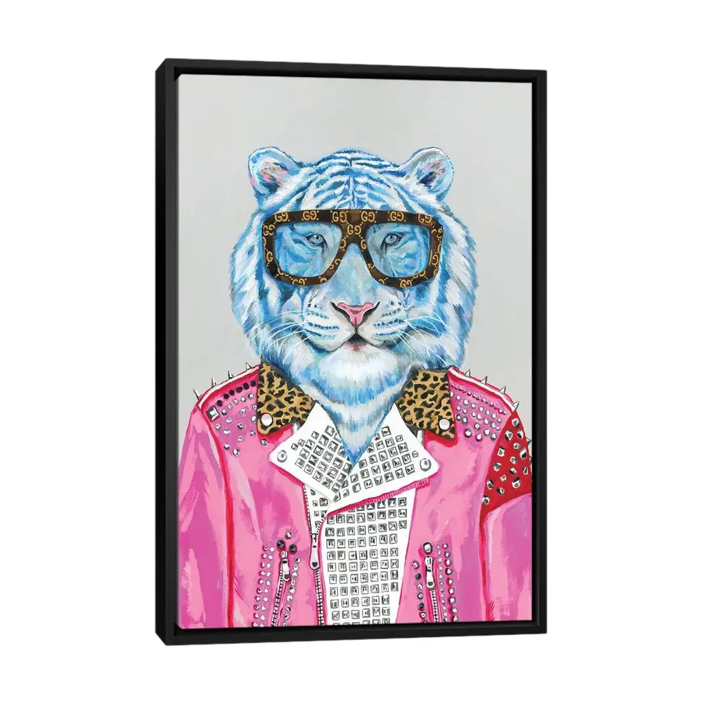 Icanvas "Gucci Blue Tiger" By Heather Perry Framed Canvas Print - White - 48x32