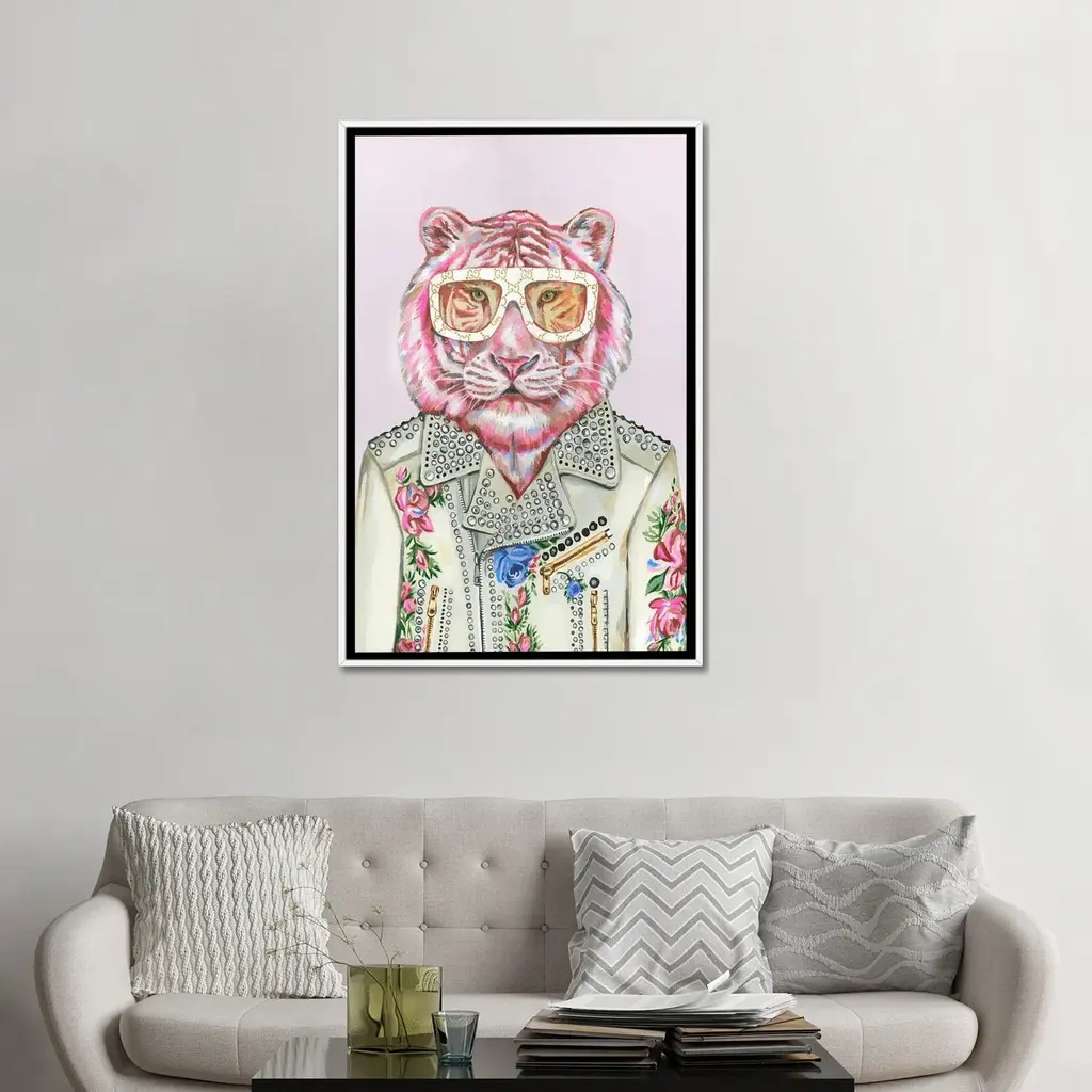 Icanvas "Gucci Pink Tiger" By Heather Perry Framed Canvas Print - Black - 26x18