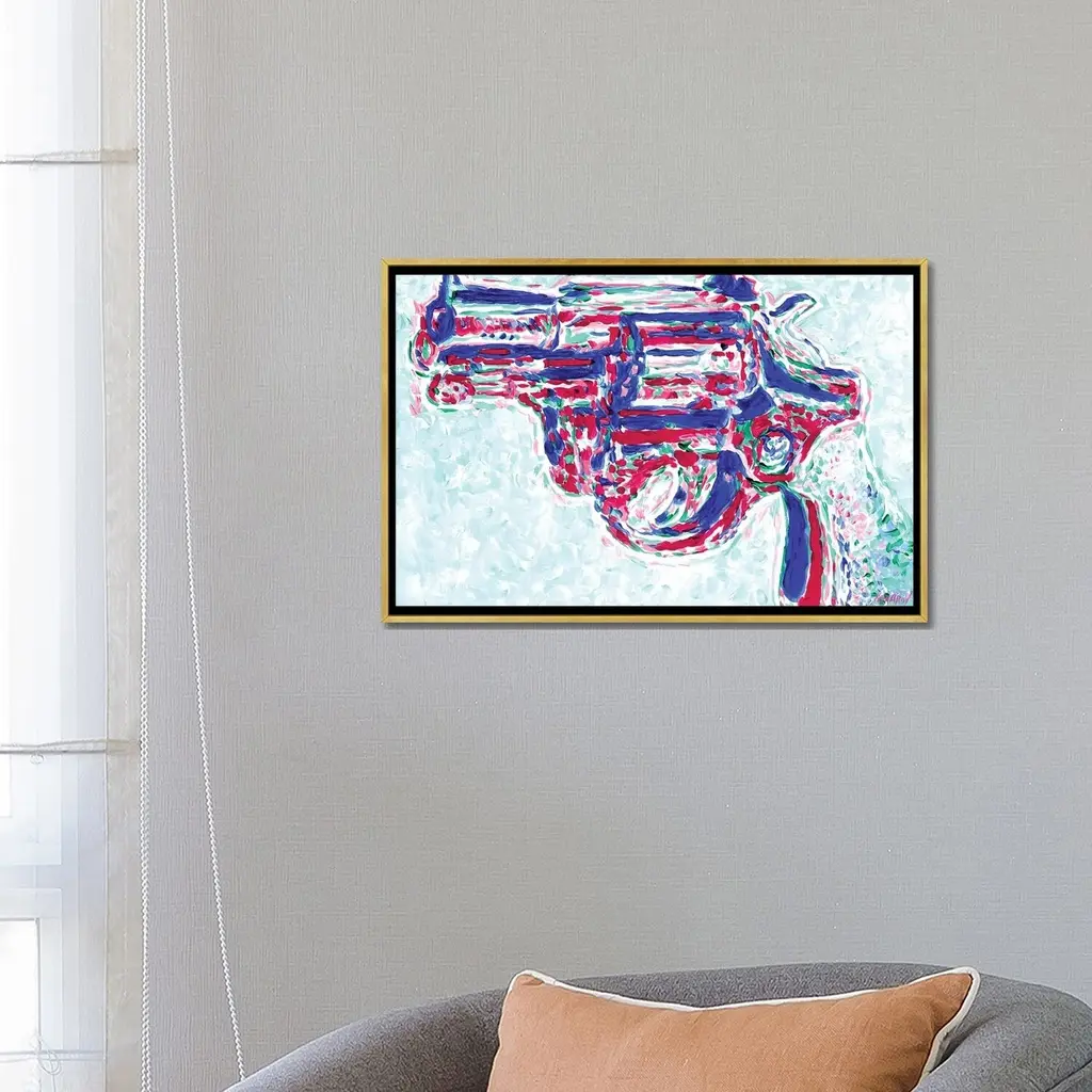Icanvas "Gun After Andy Warhol" By Vitali Komarov Framed Canvas Print - Black - 26x40