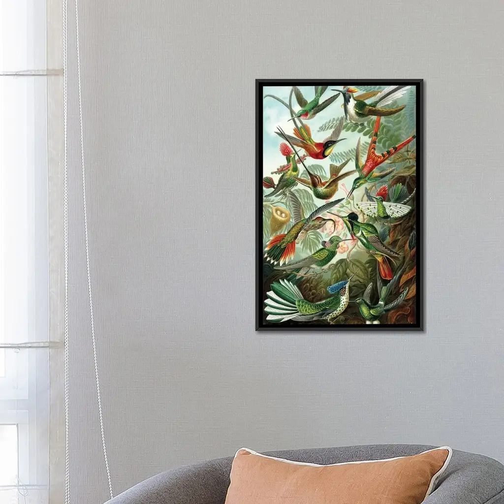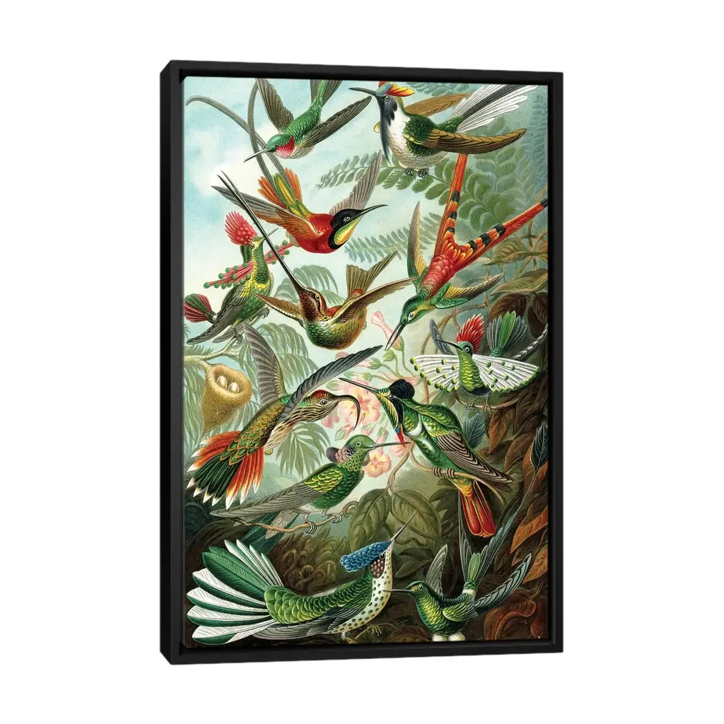 Icanvas "Haeckel Hummingbirds" By Patentprintstore Framed Canvas Print - Gold - 26x18