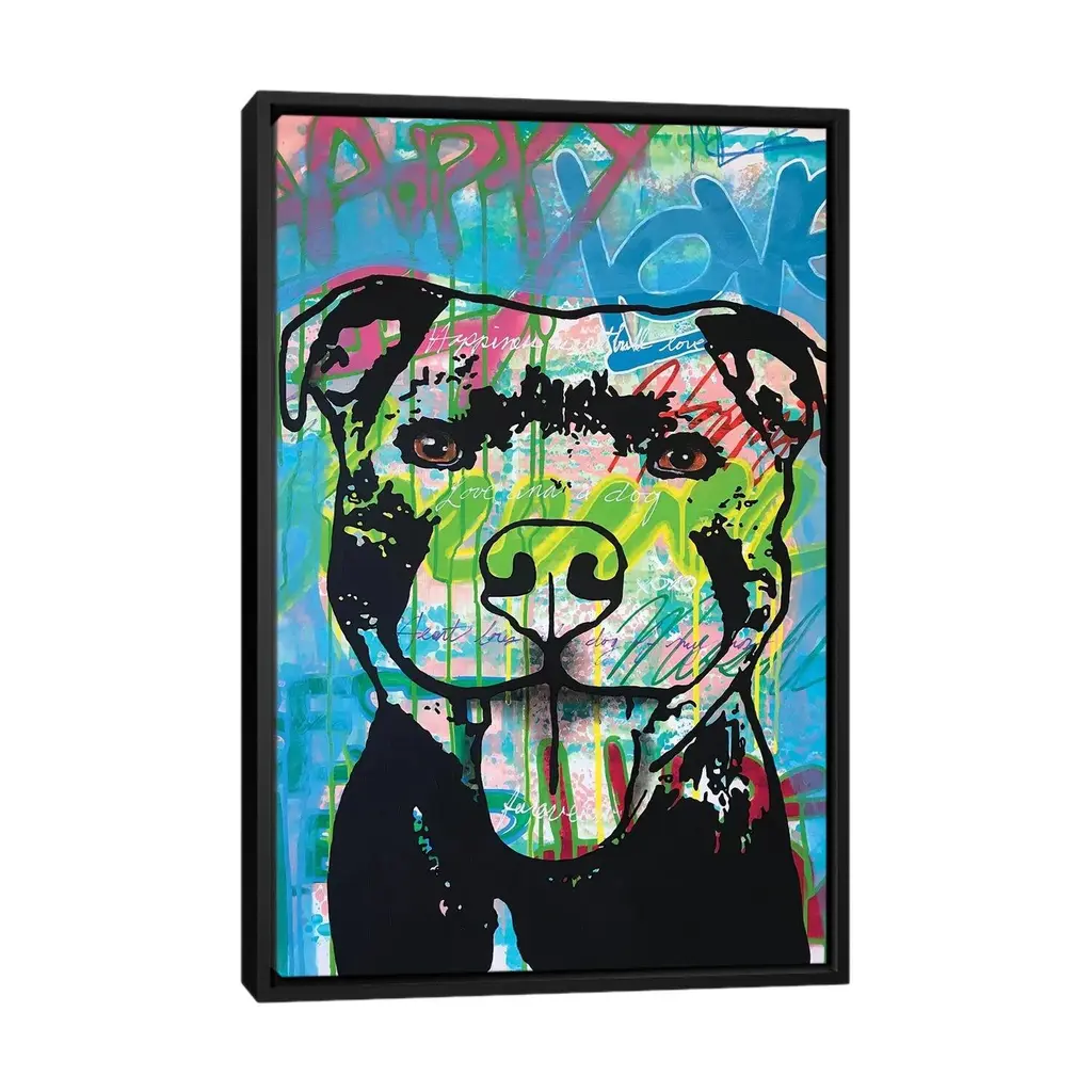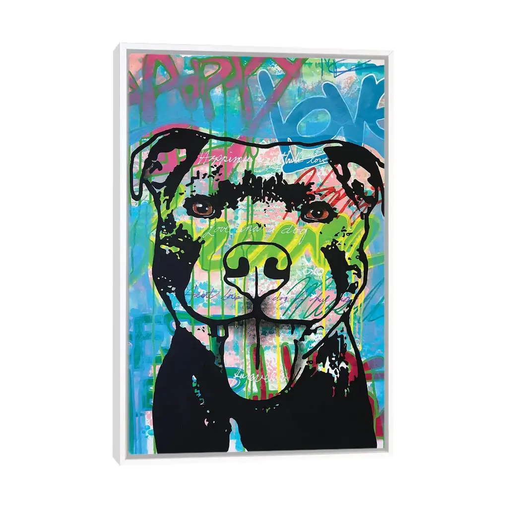 Icanvas "Happy Love Pitbull" By Dean Russo Framed - White - 26x18