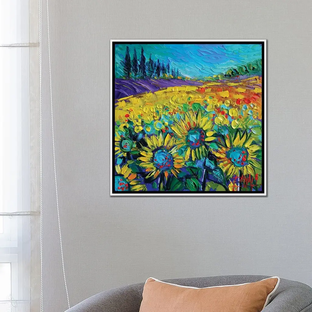 Icanvas "Happy Tournesols" By Mona Edulesco Framed Canvas Print - White - 18x18