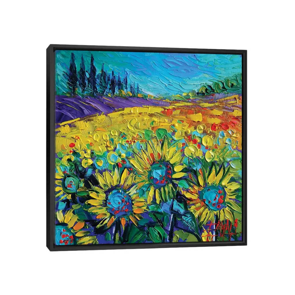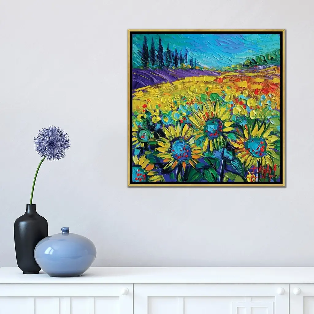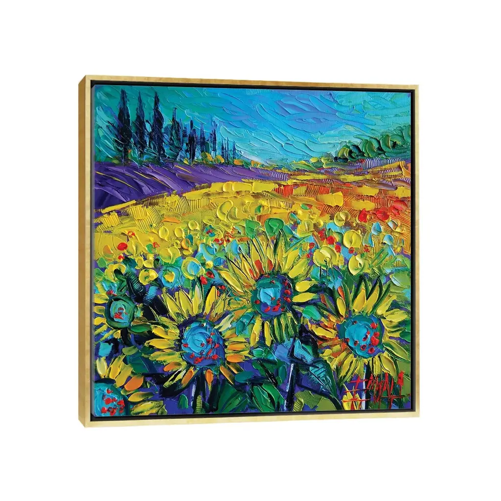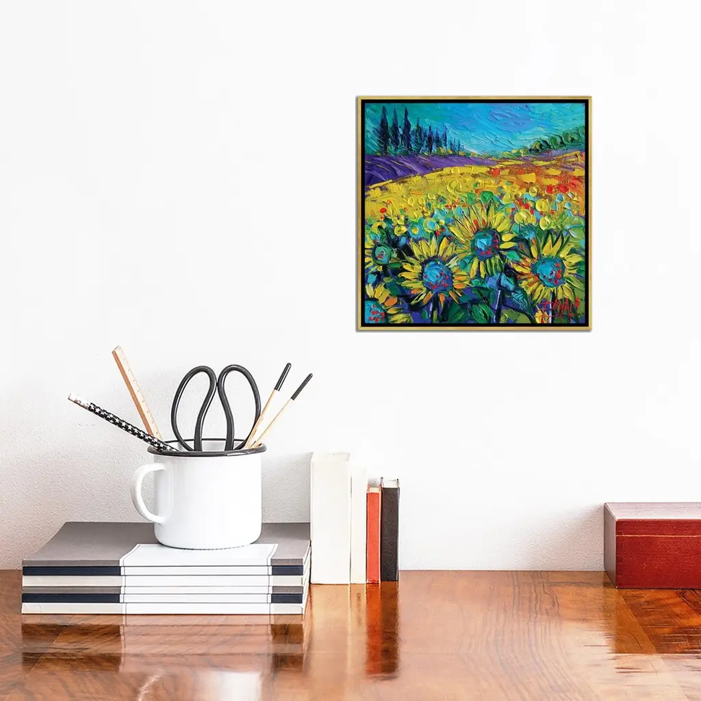 Icanvas "Happy Tournesols" By Mona Edulesco Framed Canvas Print - White - 26x26