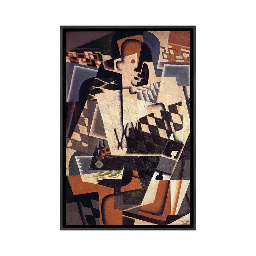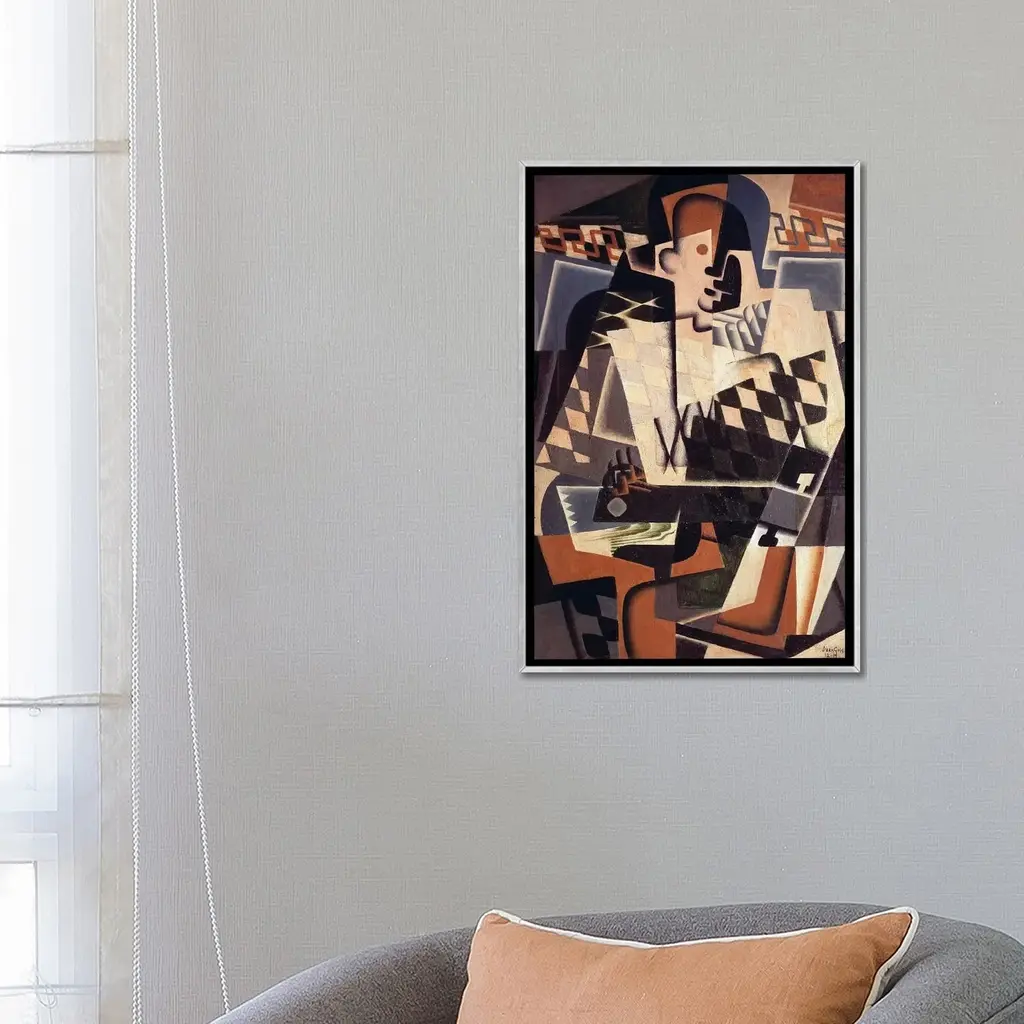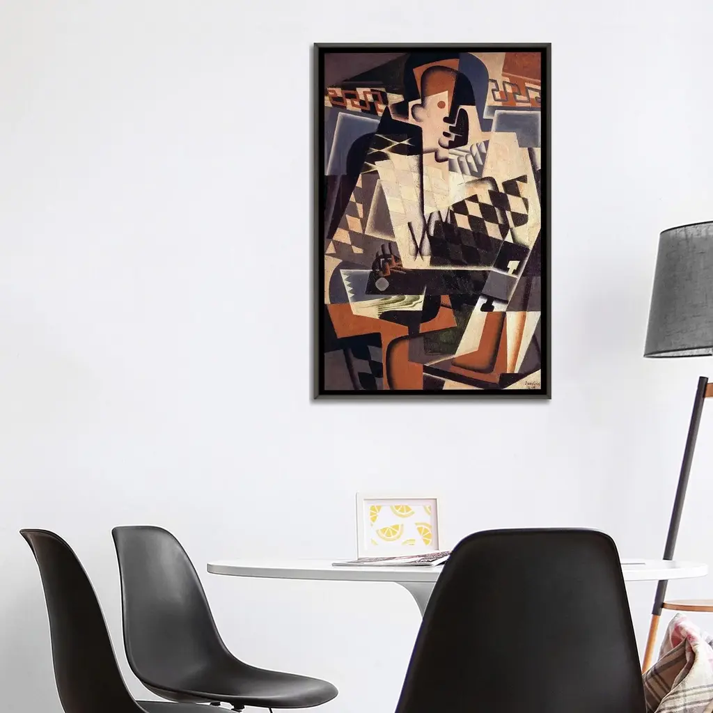 Icanvas "Harlequin With A Guitar, 1917 (Oil On Canvas)" By Juan Gris Framed - Ebony - 40x26