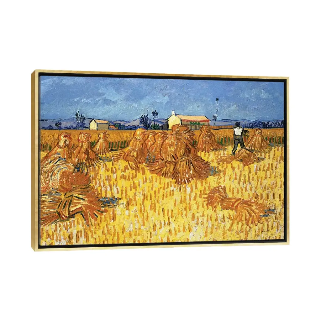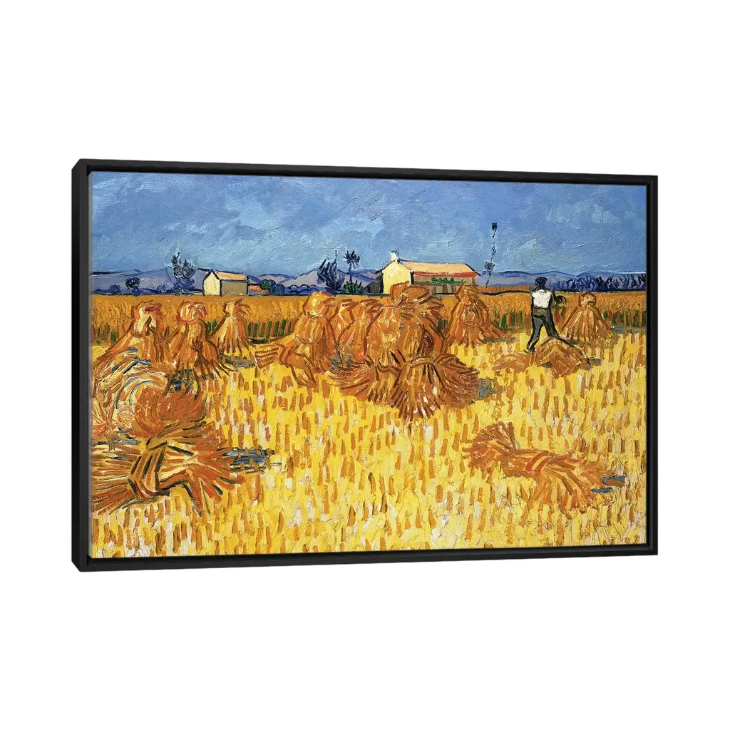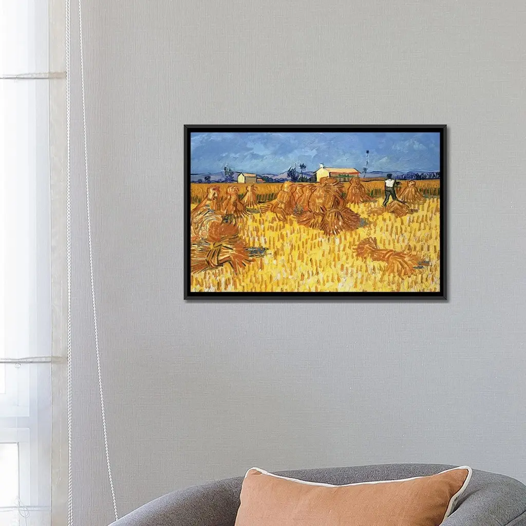 Icanvas "Harvest In Provence, June 1888" By Vincent Van Gogh Framed Canvas Print - White - 18x26