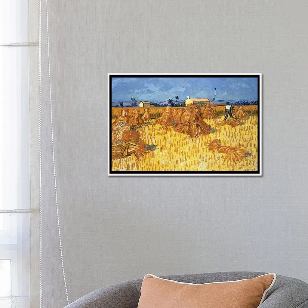 Icanvas "Harvest In Provence, June 1888" By Vincent Van Gogh Framed Canvas Print - White - 26x40