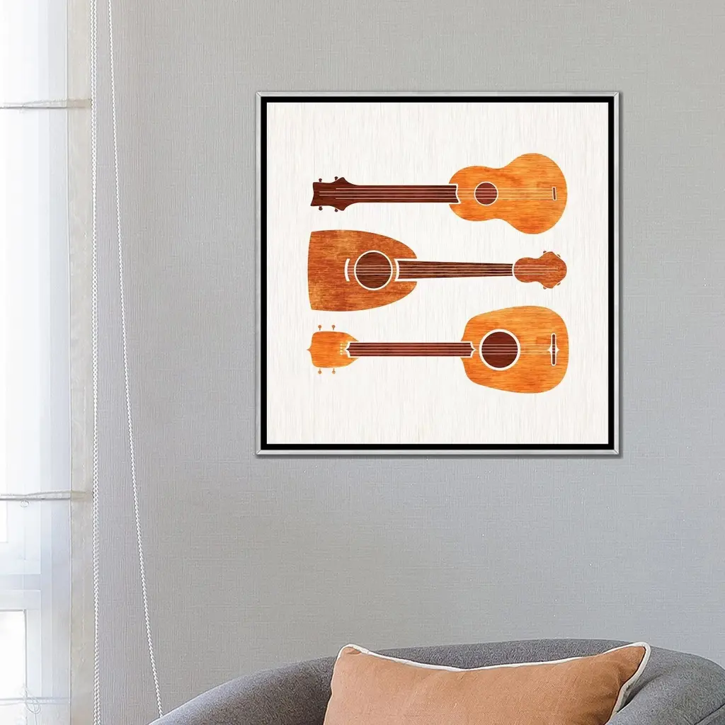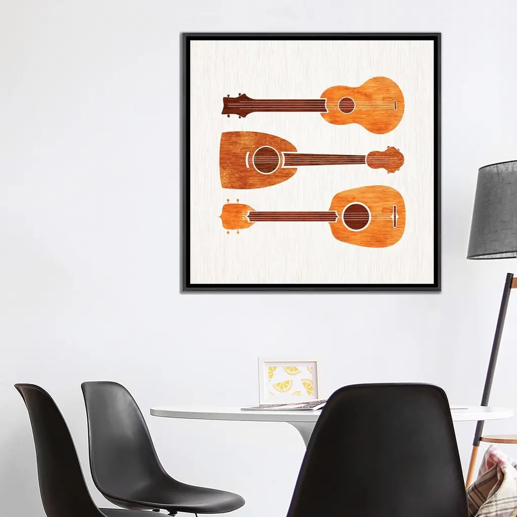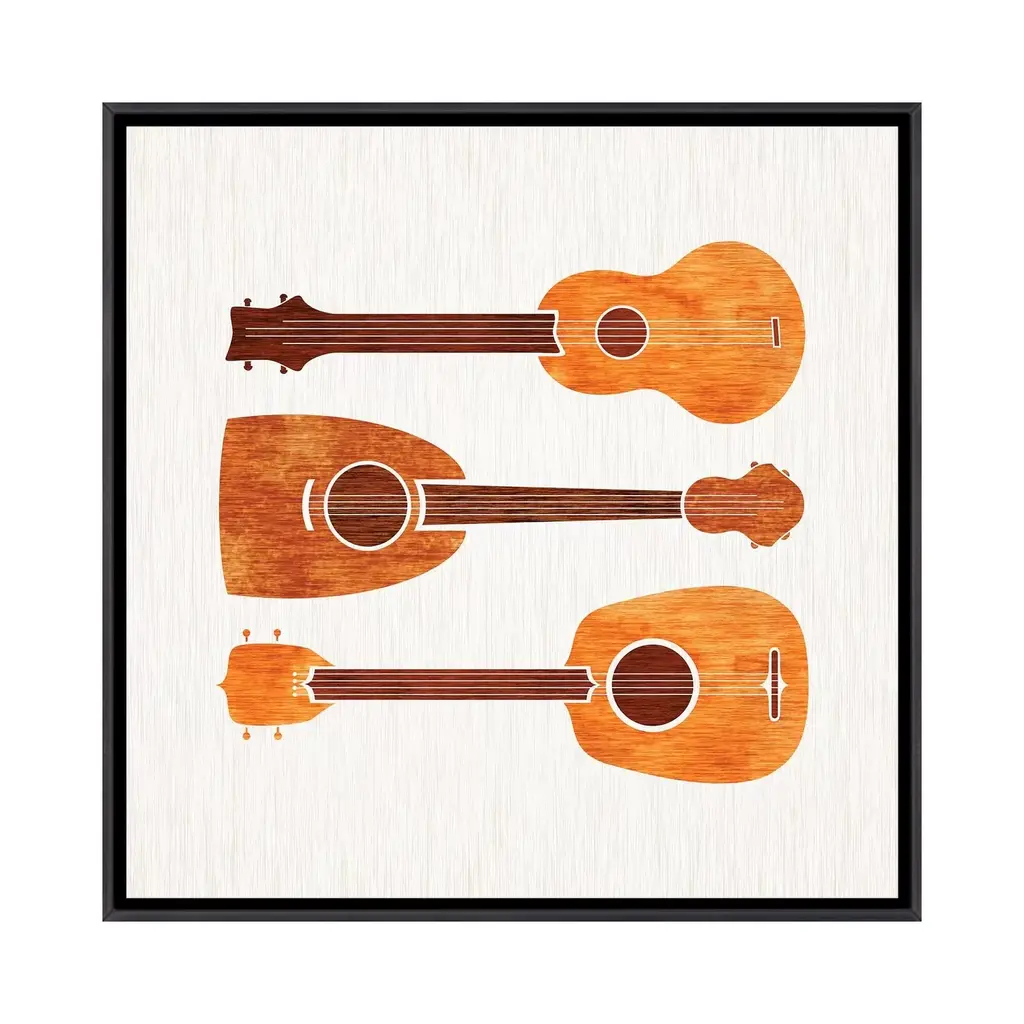 Icanvas "Hawaiian Ukuleles" By Modern Tropical Framed - Ebony - 12x12