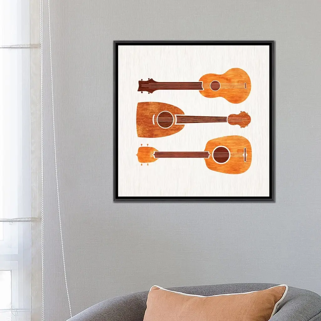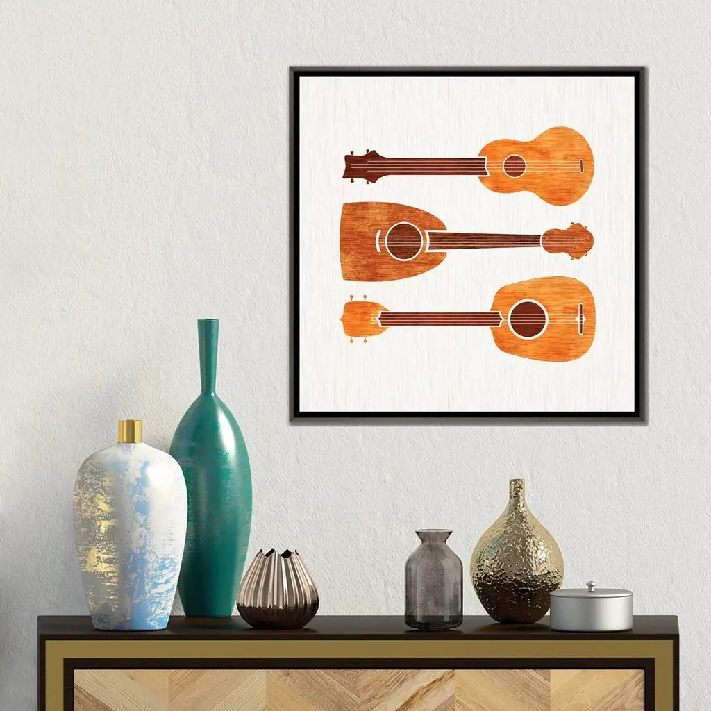 Icanvas "Hawaiian Ukuleles" By Modern Tropical Framed - Ebony - 37x37