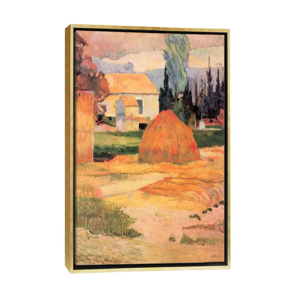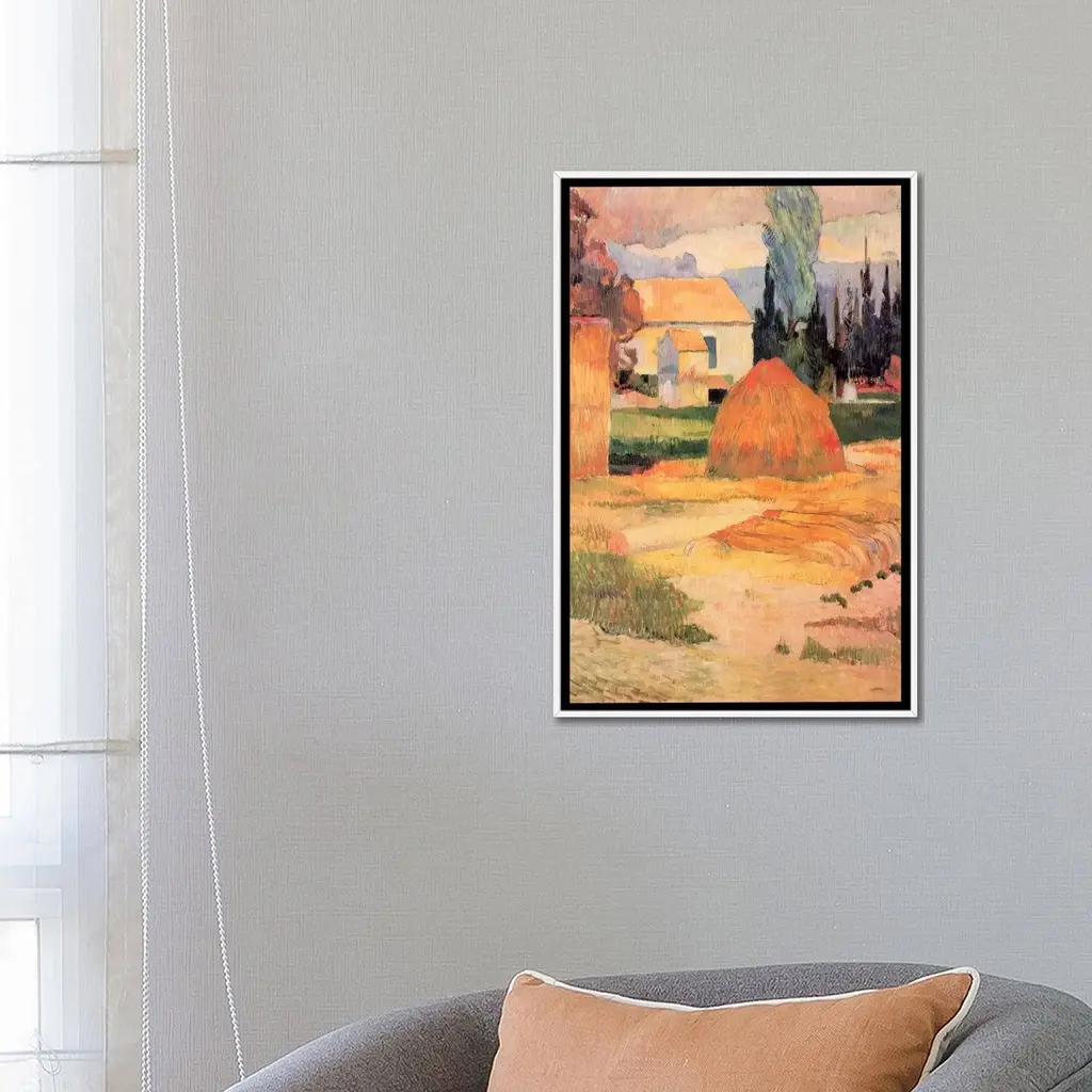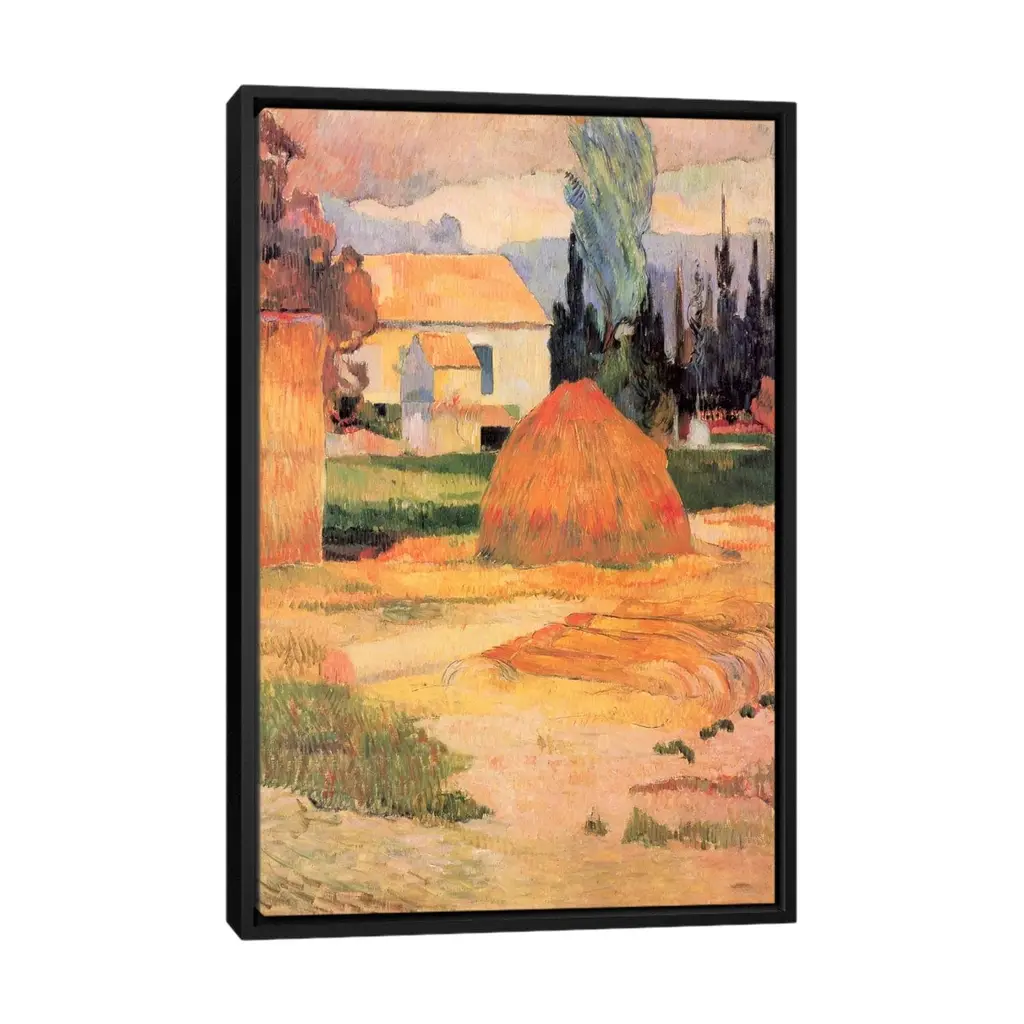 Icanvas "Haystack In Village" By Paul Gauguin Framed Canvas Print - Black - 40x26