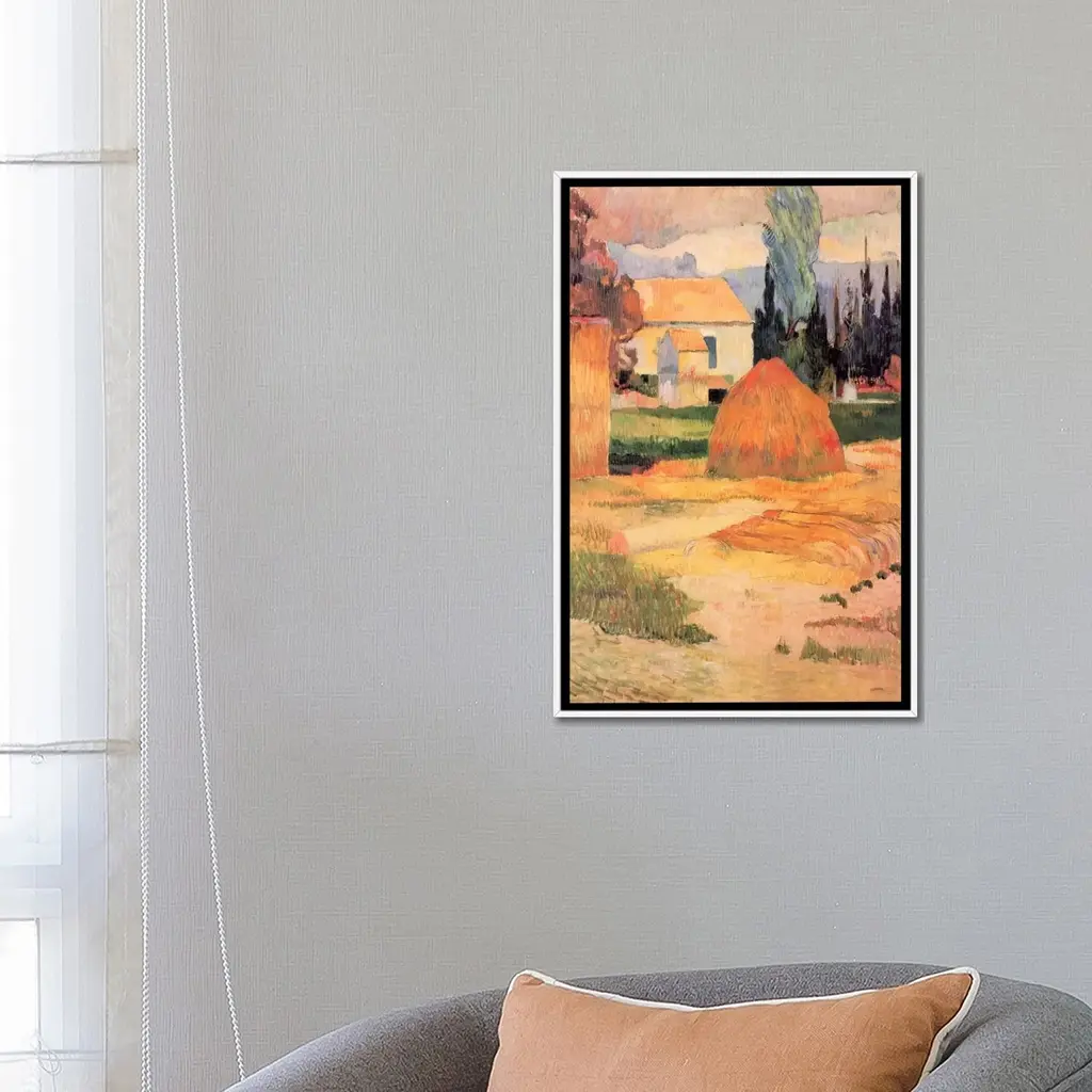 Icanvas "Haystack In Village" By Paul Gauguin Framed Canvas Print - Gold - 26x18