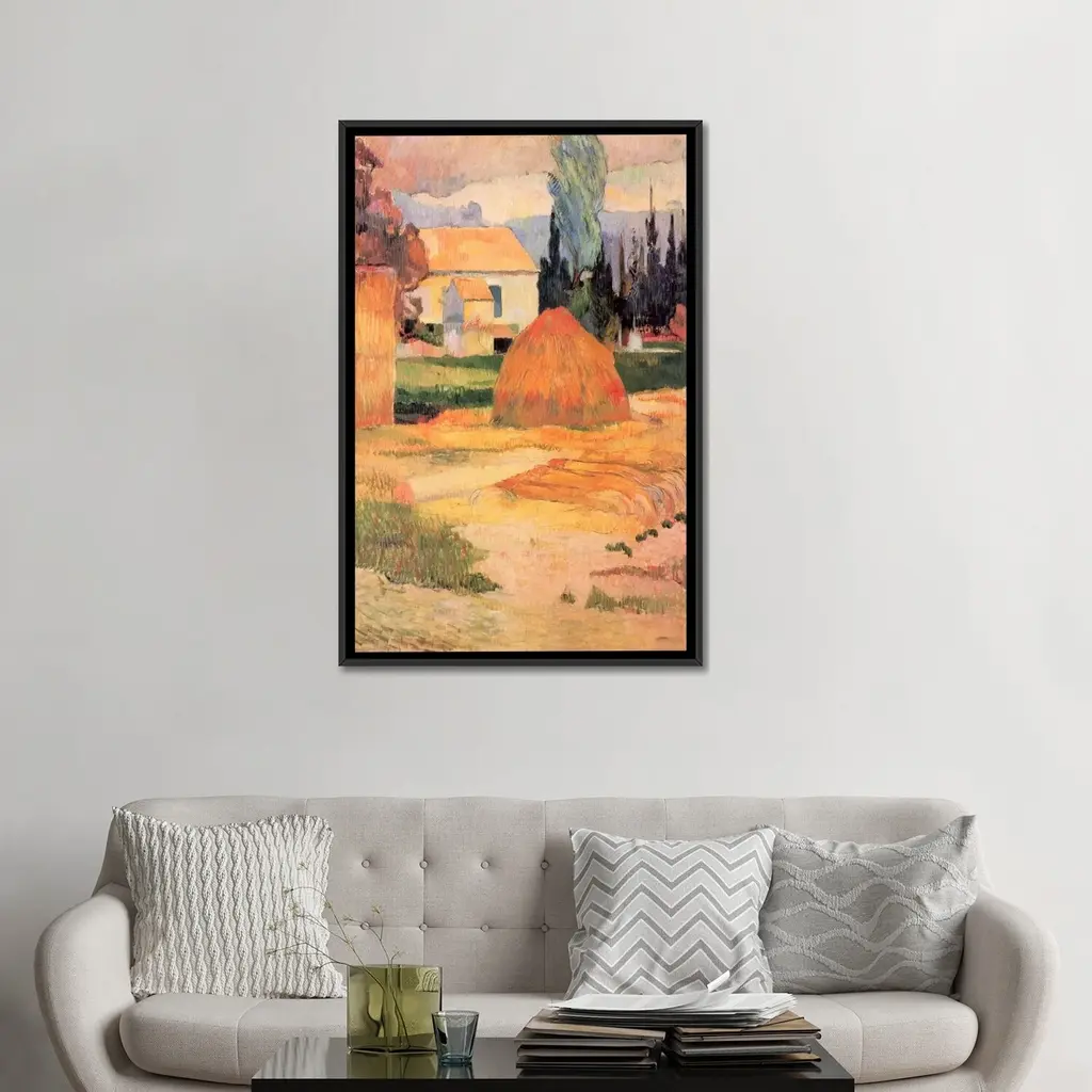 Icanvas "Haystack In Village" By Paul Gauguin Framed Canvas Print - Gold - 40x26