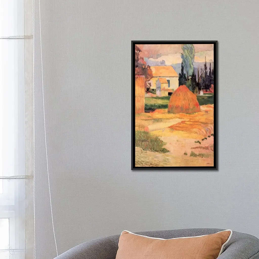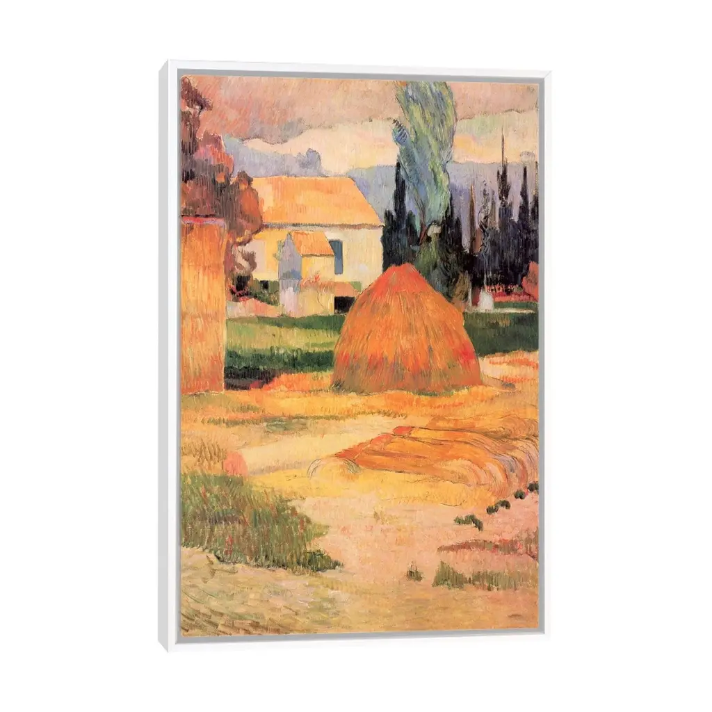 Icanvas "Haystack In Village" By Paul Gauguin Framed Canvas Print - White - 40x26
